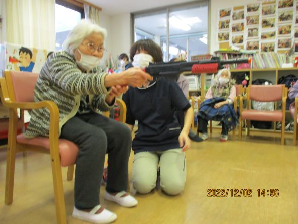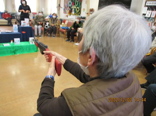 「できるかな~」と言いながらも銃を持つと皆さん真剣な表情で狙いを定めていました。