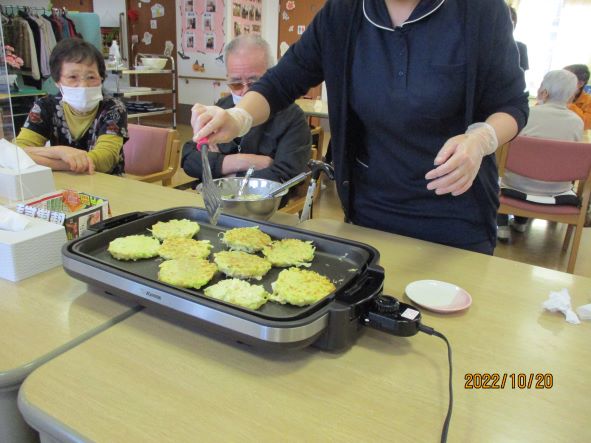 さすが、人生の先輩方!!包丁さばきもバッチリ!粉の加減のアドバイスをいただき、とてもおいしいお好み焼きを作ることができました