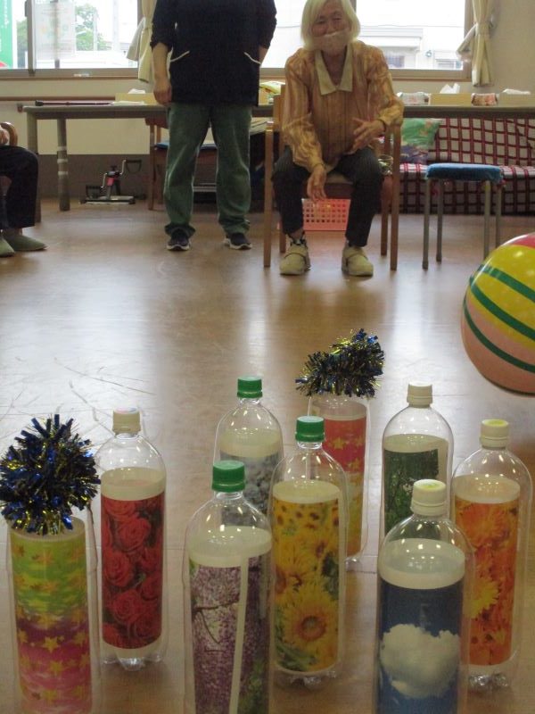 10本のピンを倒すために大小さまざまなボールを用意して好きなボールから転がしてもらいましたがストライクが難しい