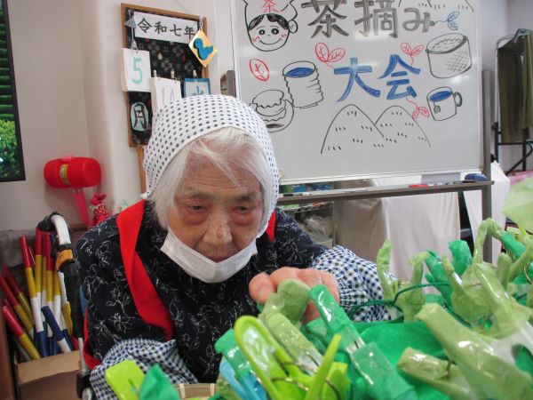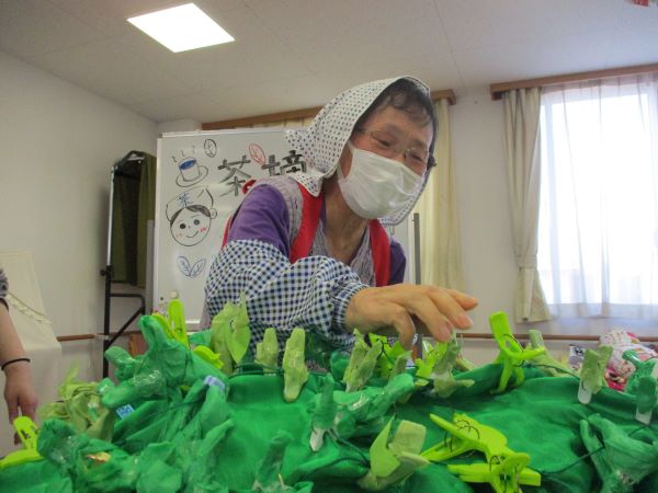 皆様には摘み子さんになっていただき制限時間内の中でどれだけ葉っぱにみたてた洗濯バサミを取れるか競い合いました💪