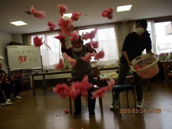 このあたりの桜は残念ながら散ってしまいましたがデイサービスでは皆様に花さかじいさんのように枯れた桜の木に花を咲かせていただきました😆
