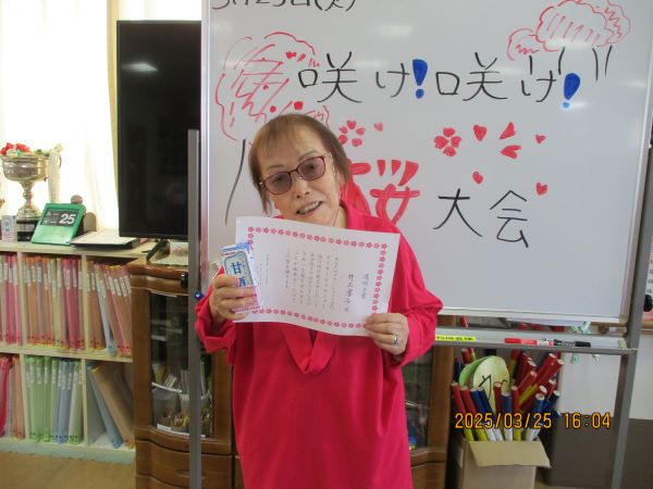 上手に花を咲かせてくれた方に花より団子とうことで甘酒を賞品にさせていただきました🍶