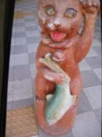 面白いなと思い写真を撮ったところ同じ道の駅に魚を持った猫の木彫りも発見
