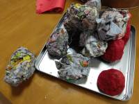 インドネシア実習生が、新聞紙を濡らし何やら”コネコネ”作っています。