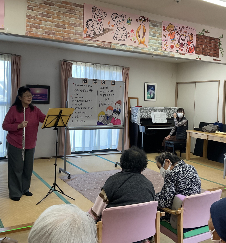 そして軽快な『東京ブギウギ』が披露され。ご利用者様もウキウキ気分です💕