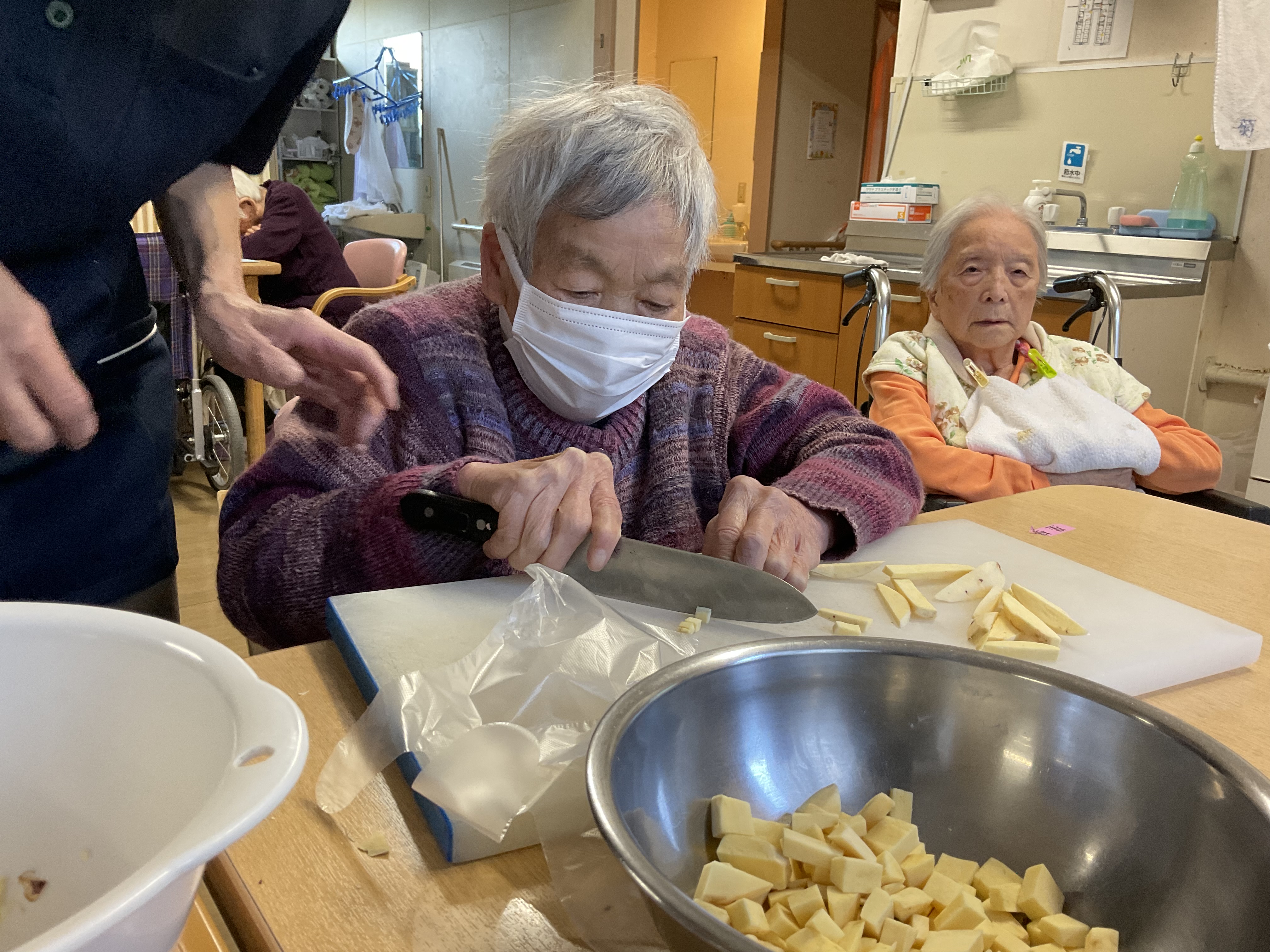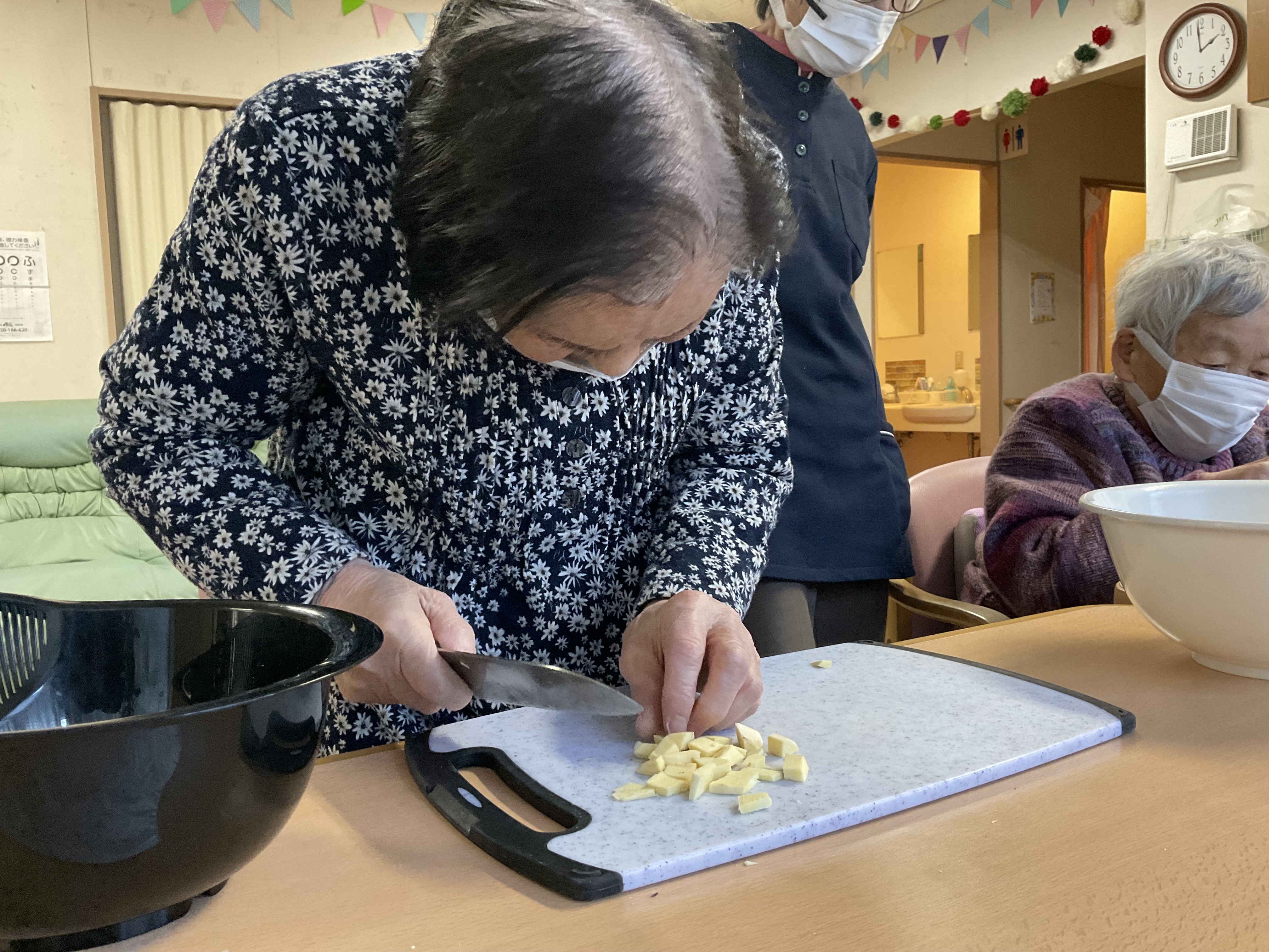 さつまいもを切るところから生地作りまで、皆様にご参加いただき