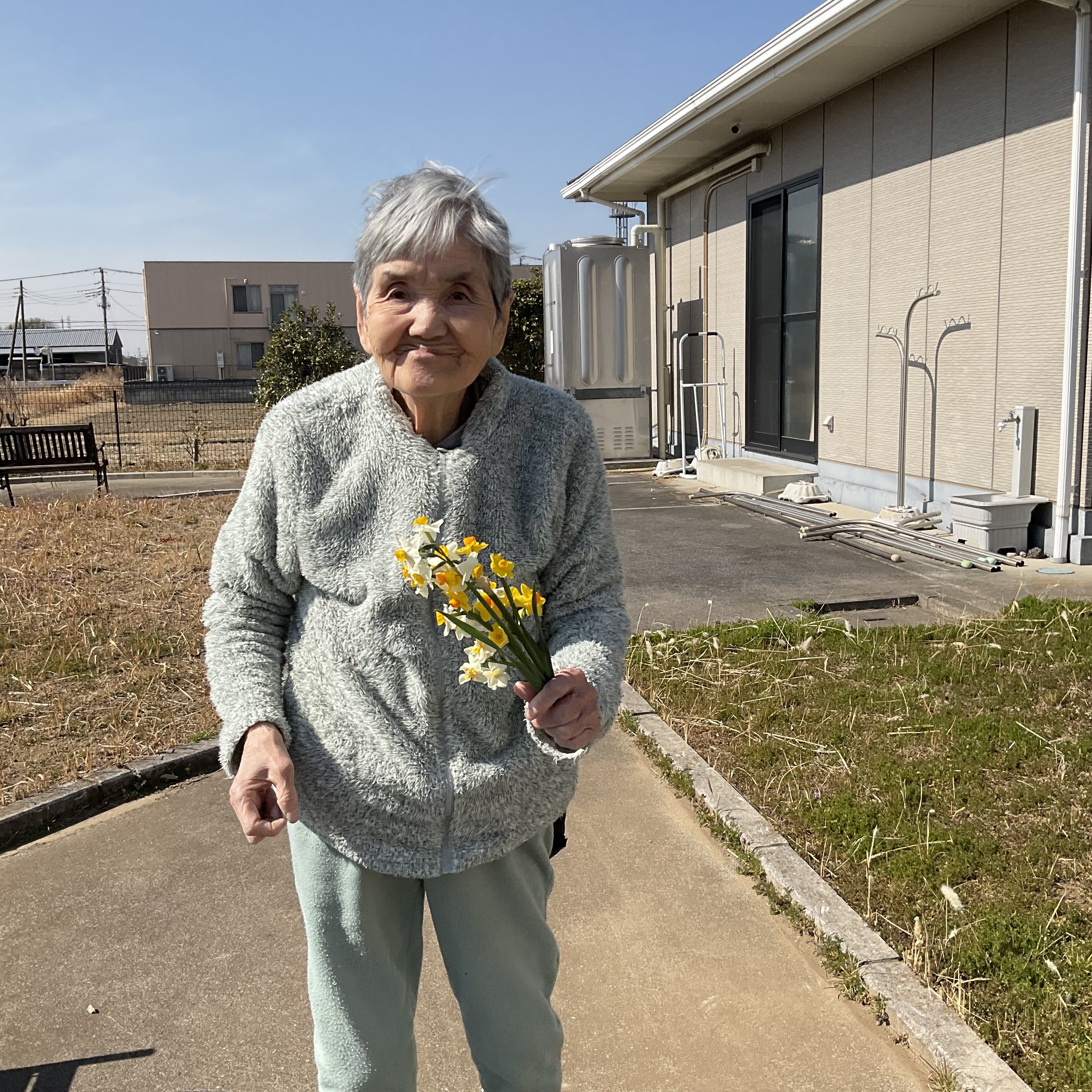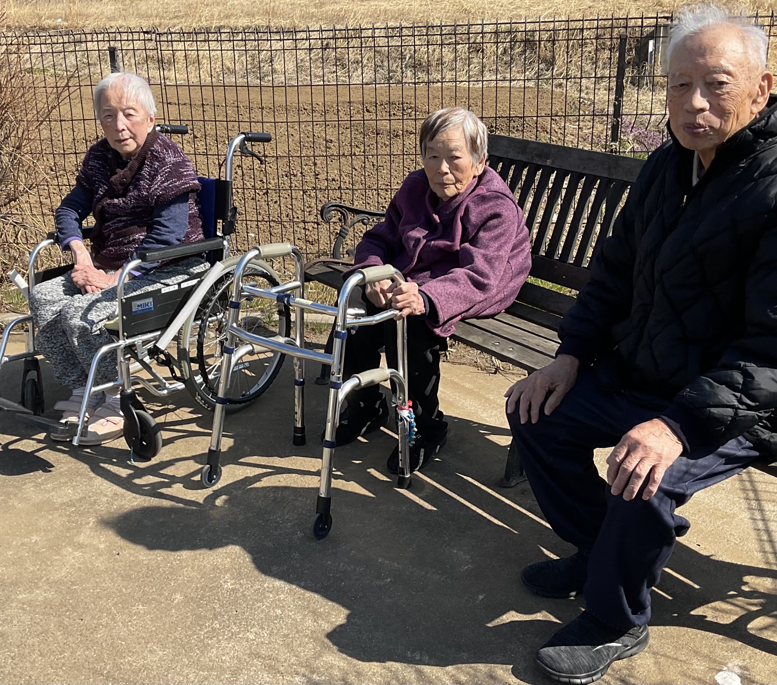 ご利用者様も暖かい気候に誘われて、中庭をお散歩しました。