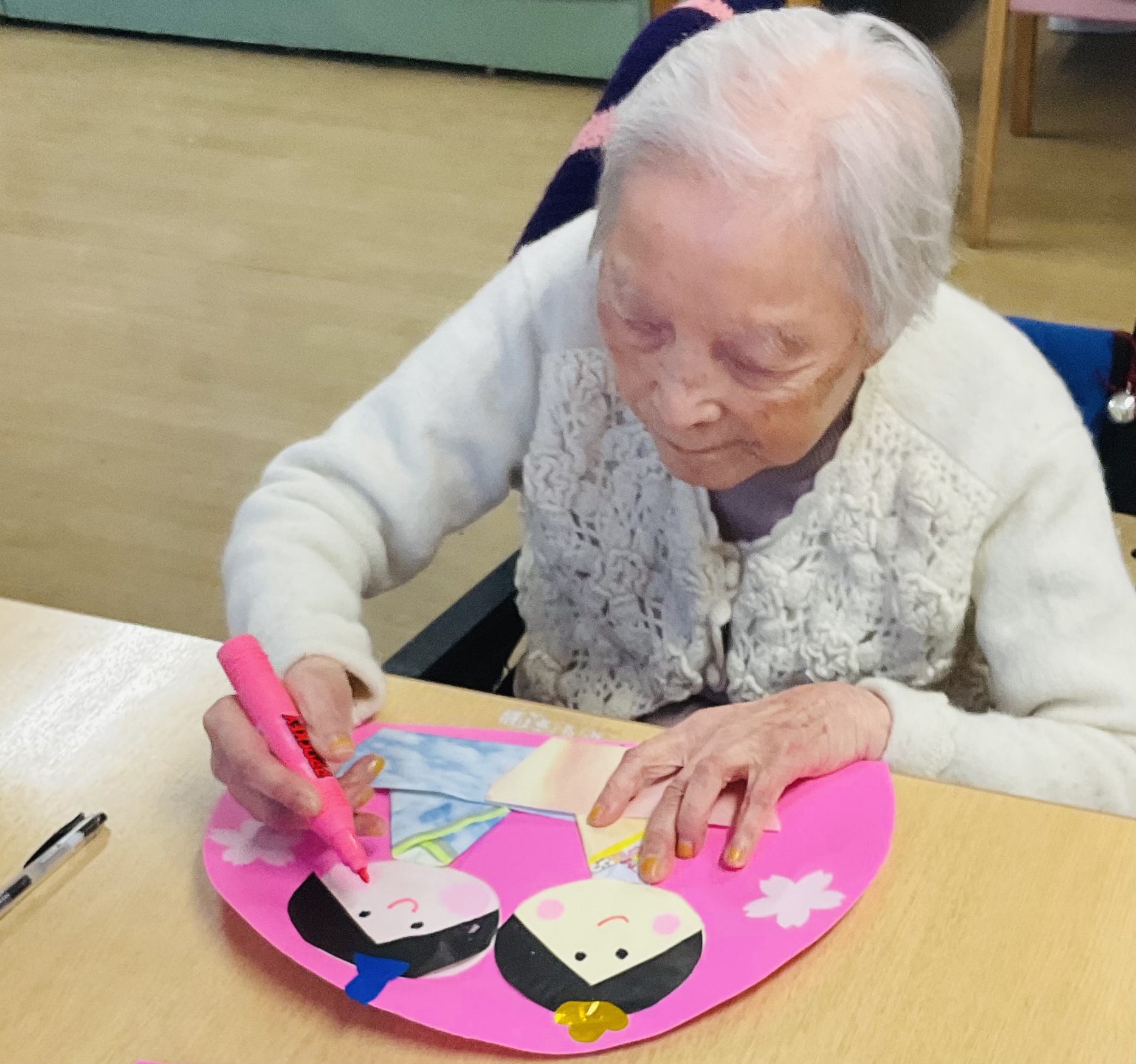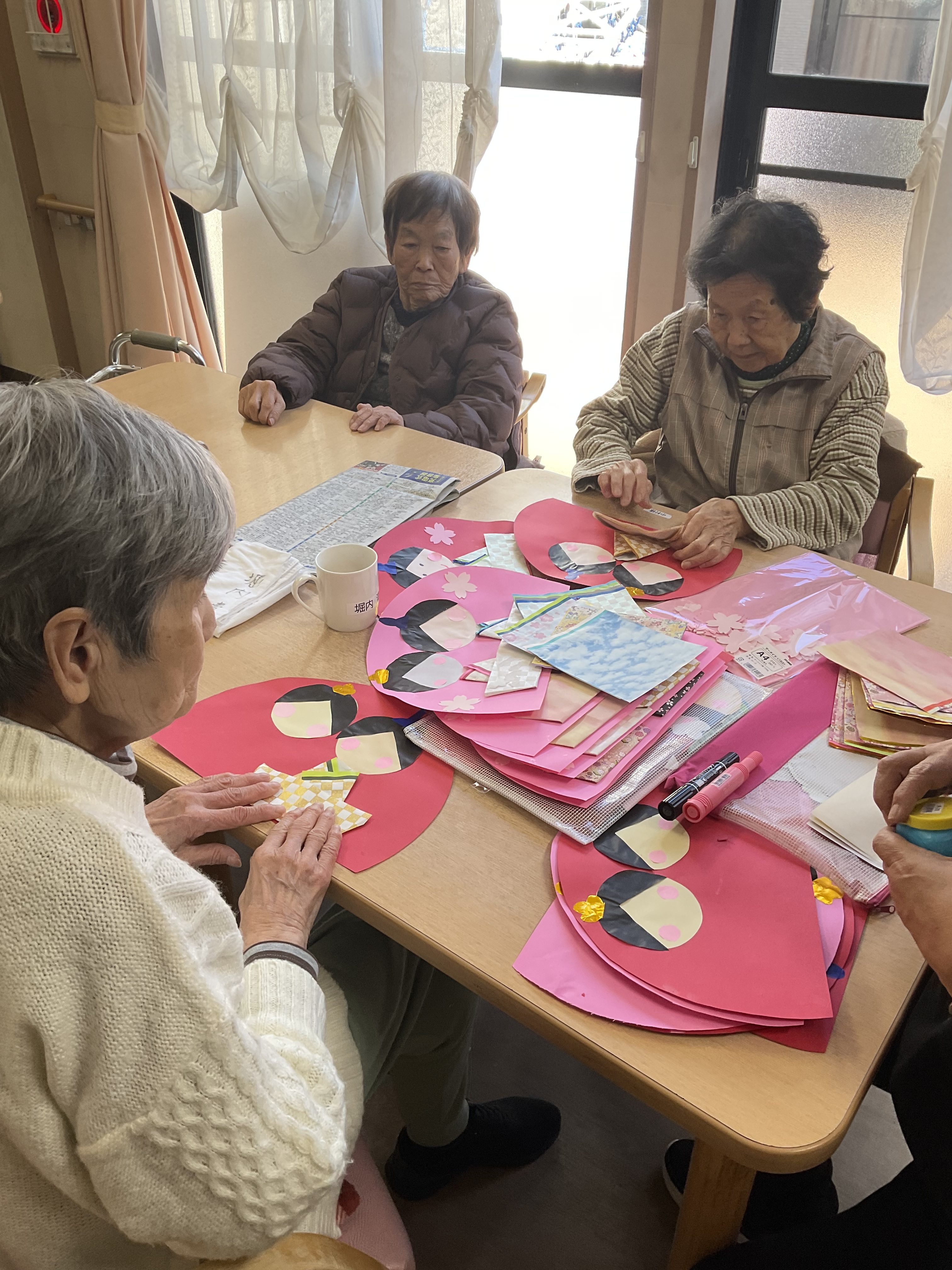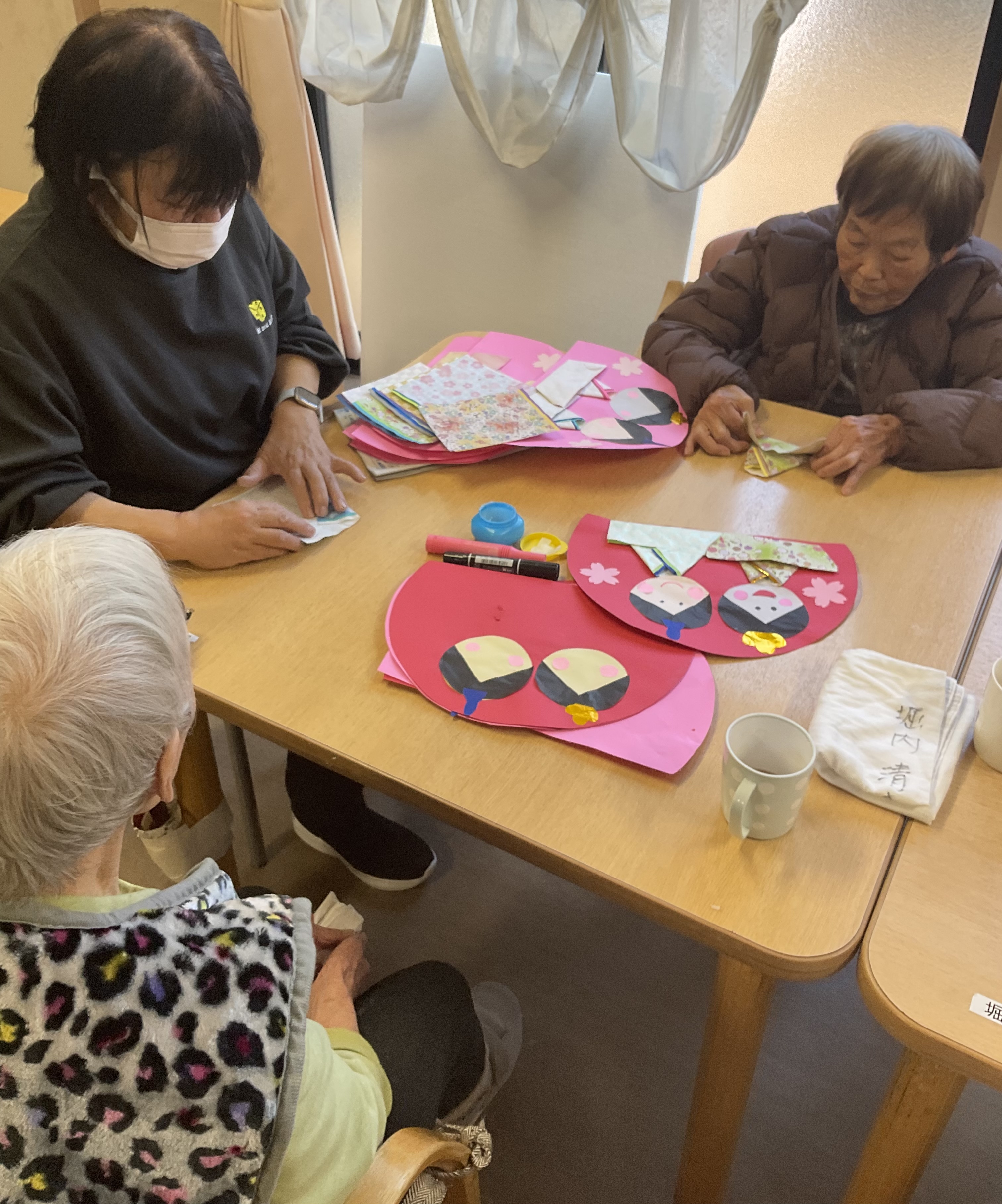 ご利用者様と一緒に、折り紙を使いお雛様を作りました