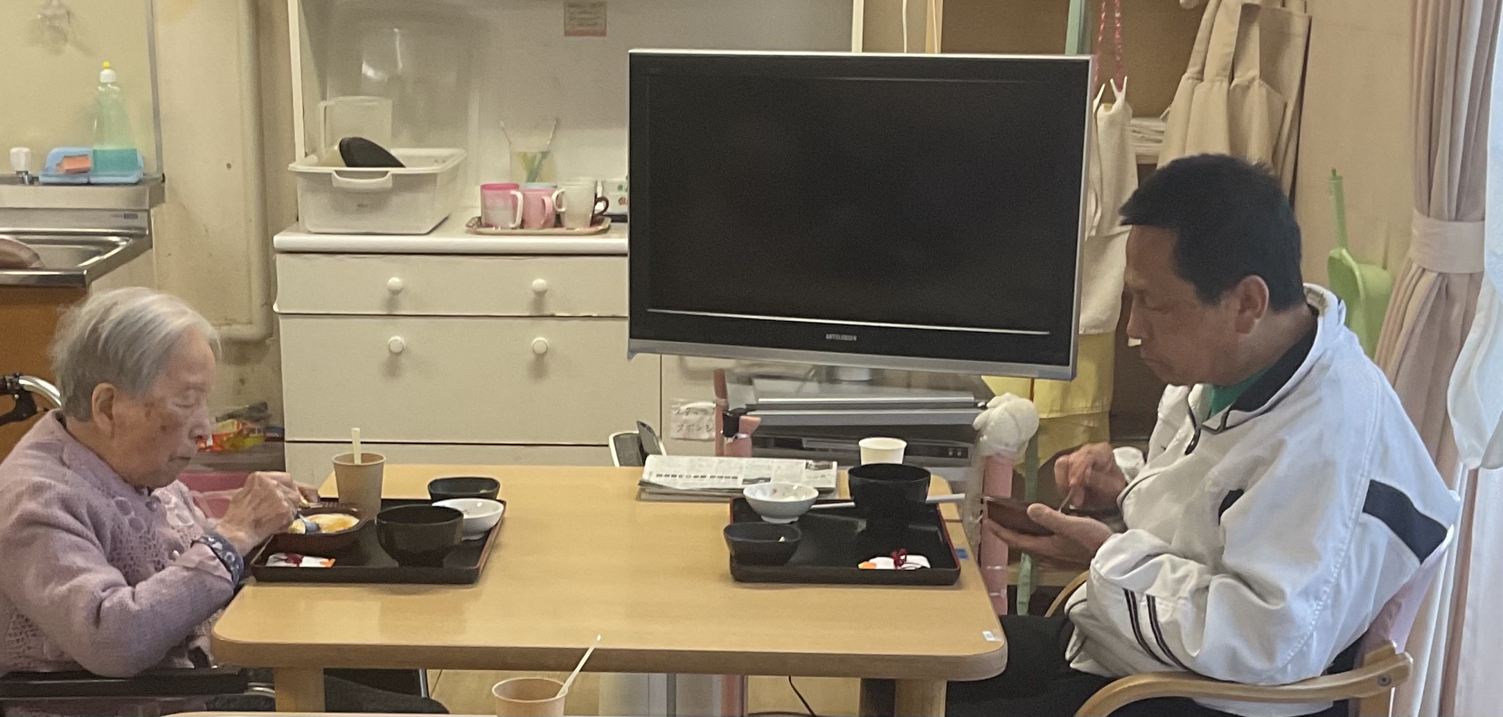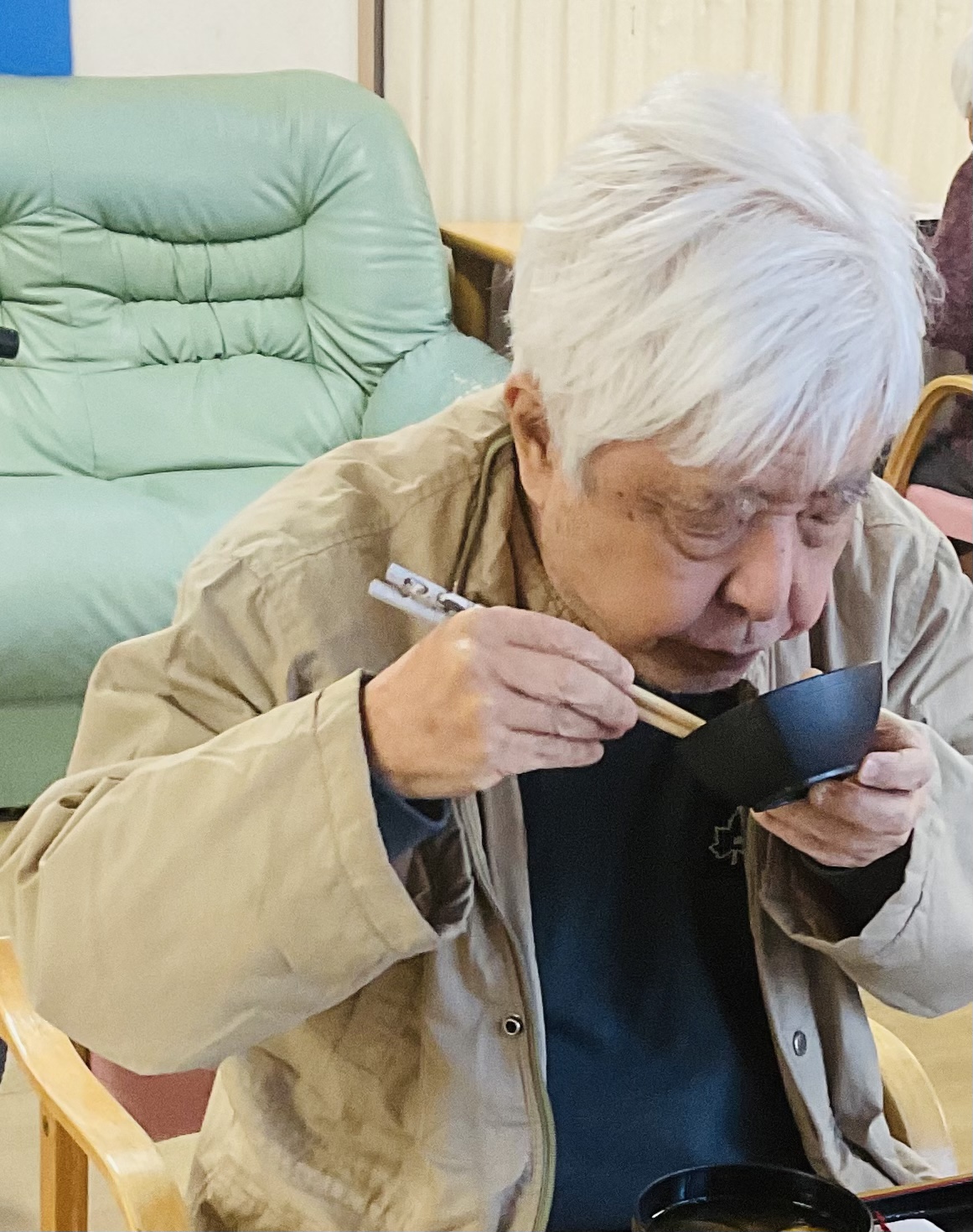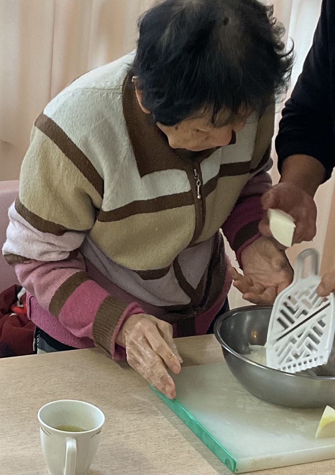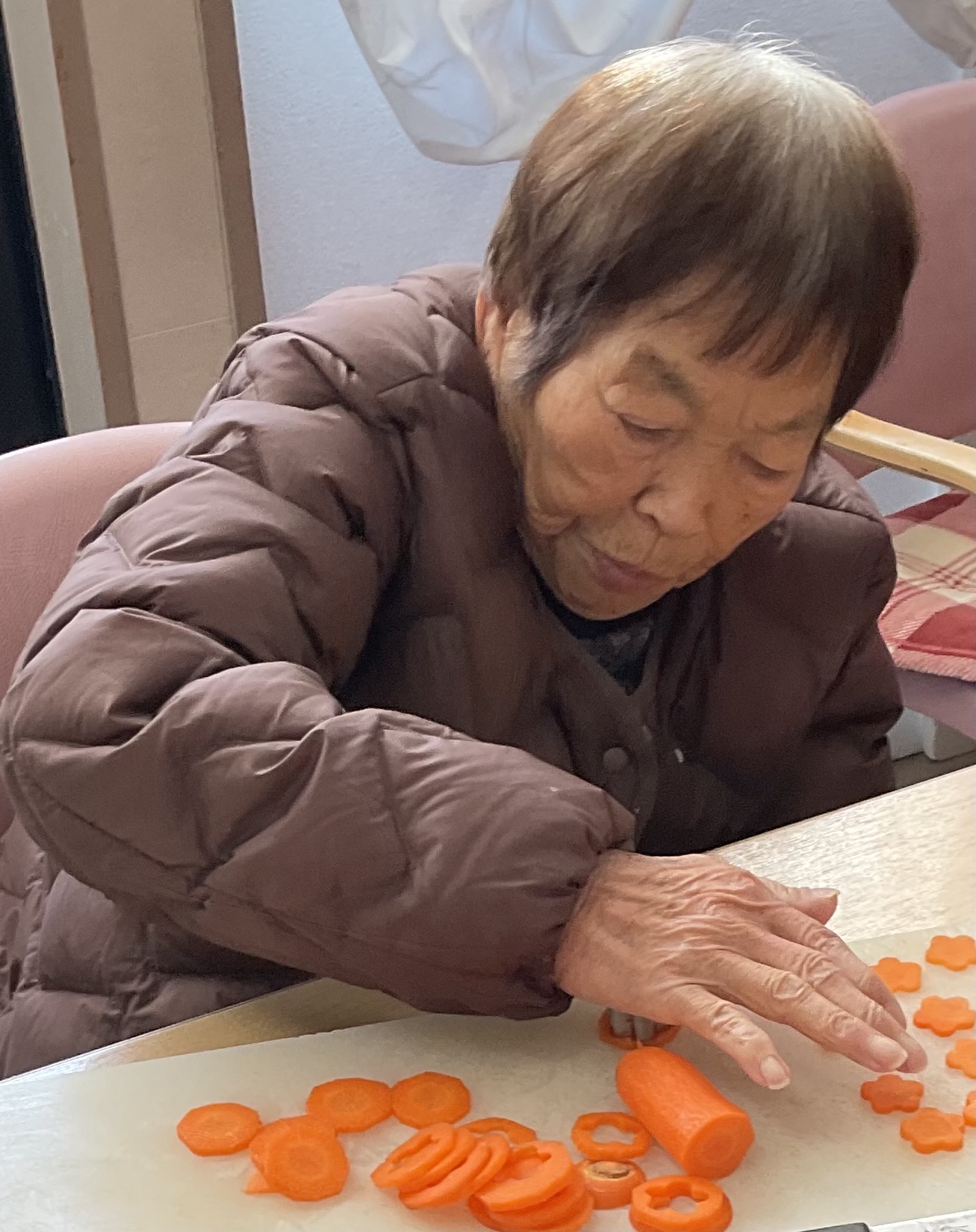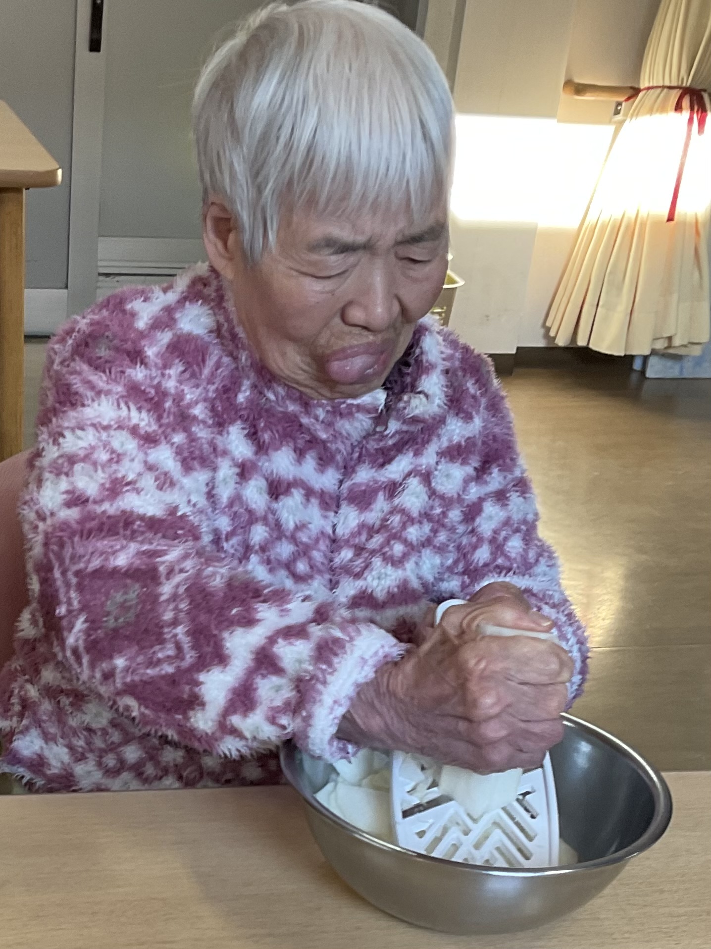 健康の秘訣は、施設でのお手伝いで食器を毎日拭いて下さいます。