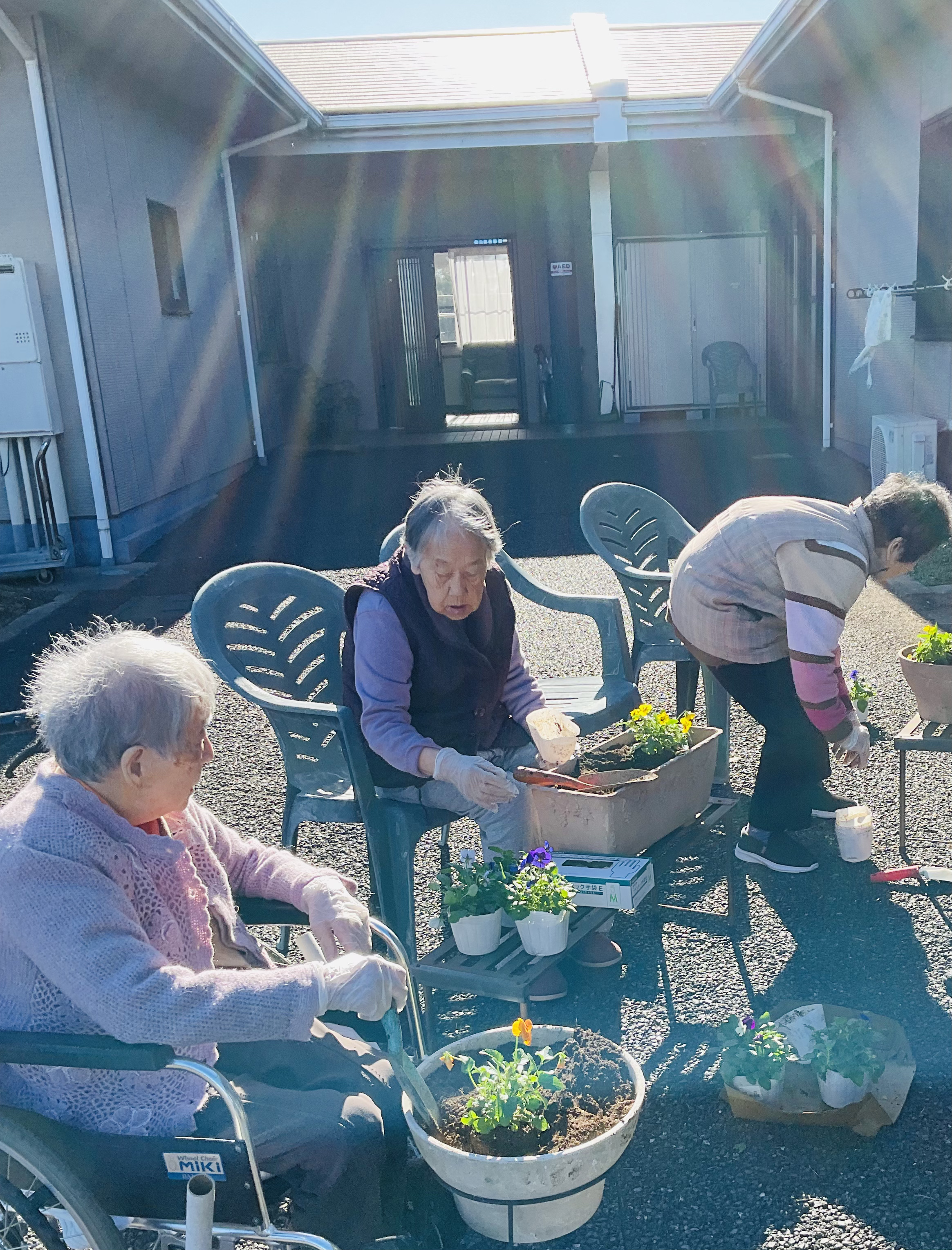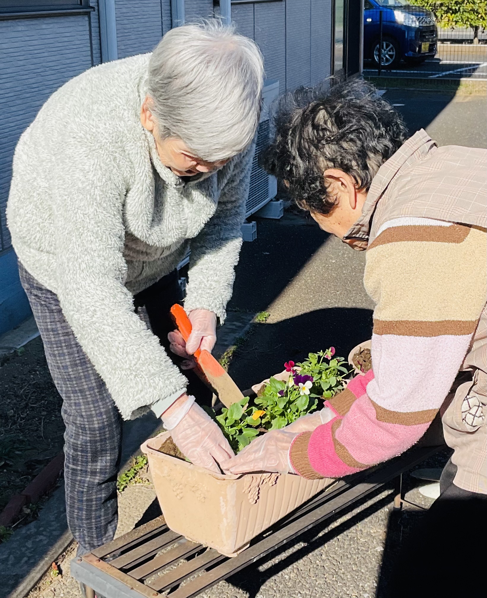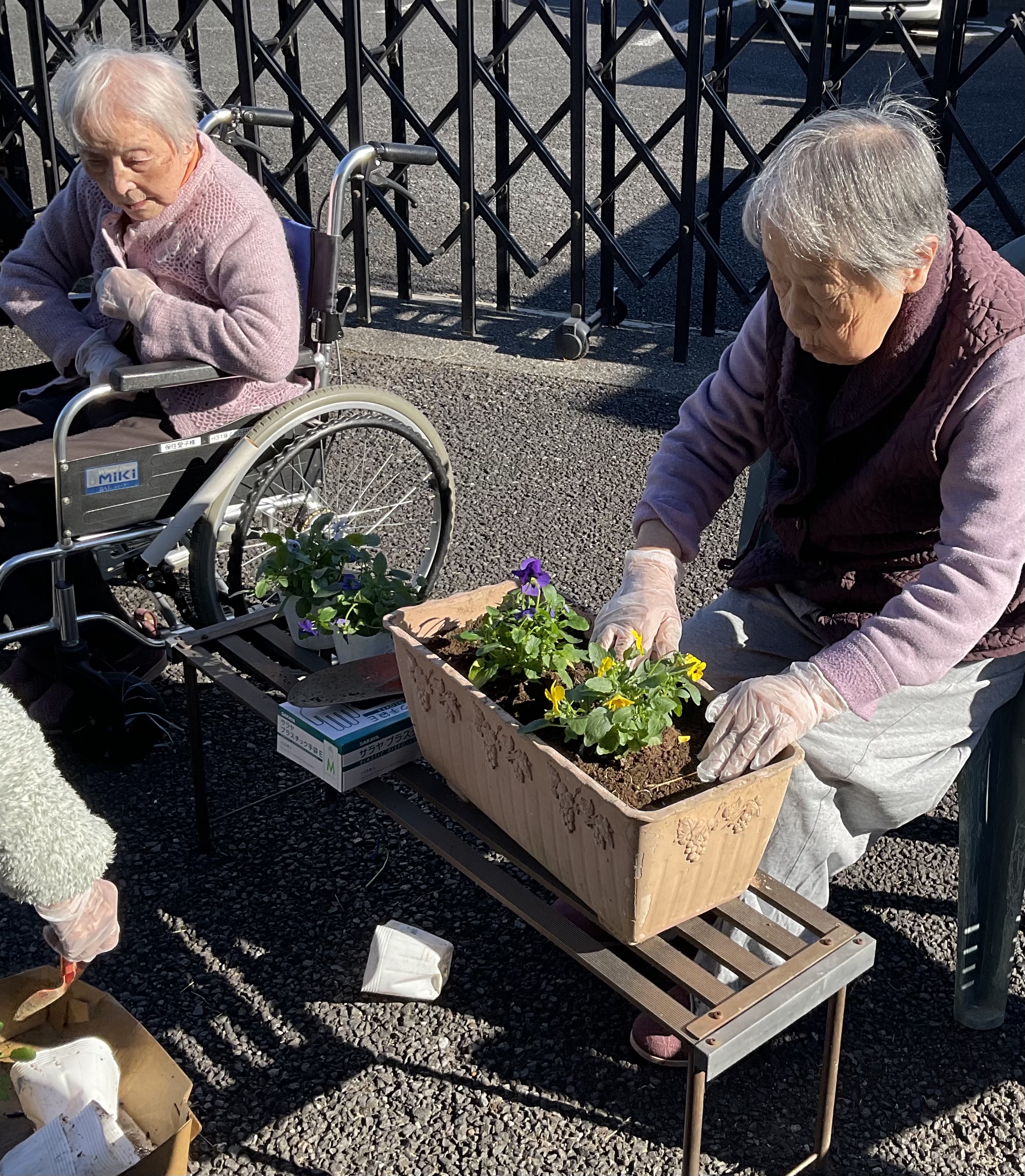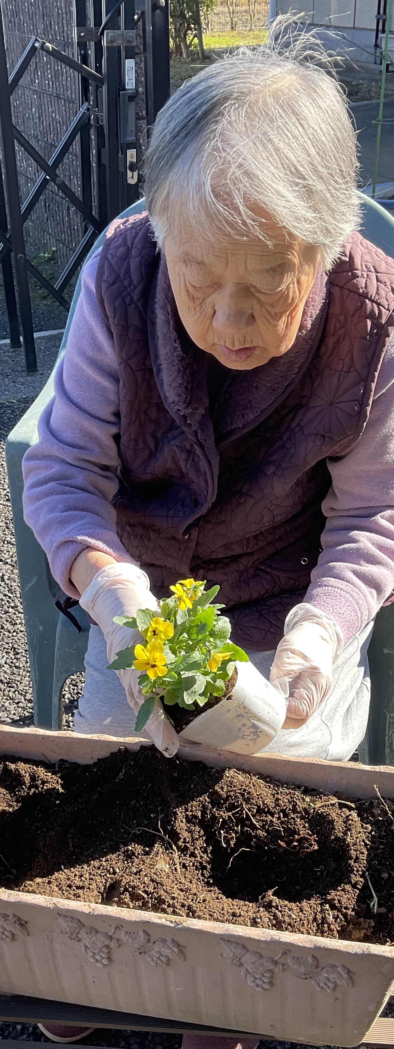 ご利用者様に好みの色を選んでいただき、ビオラを植えました