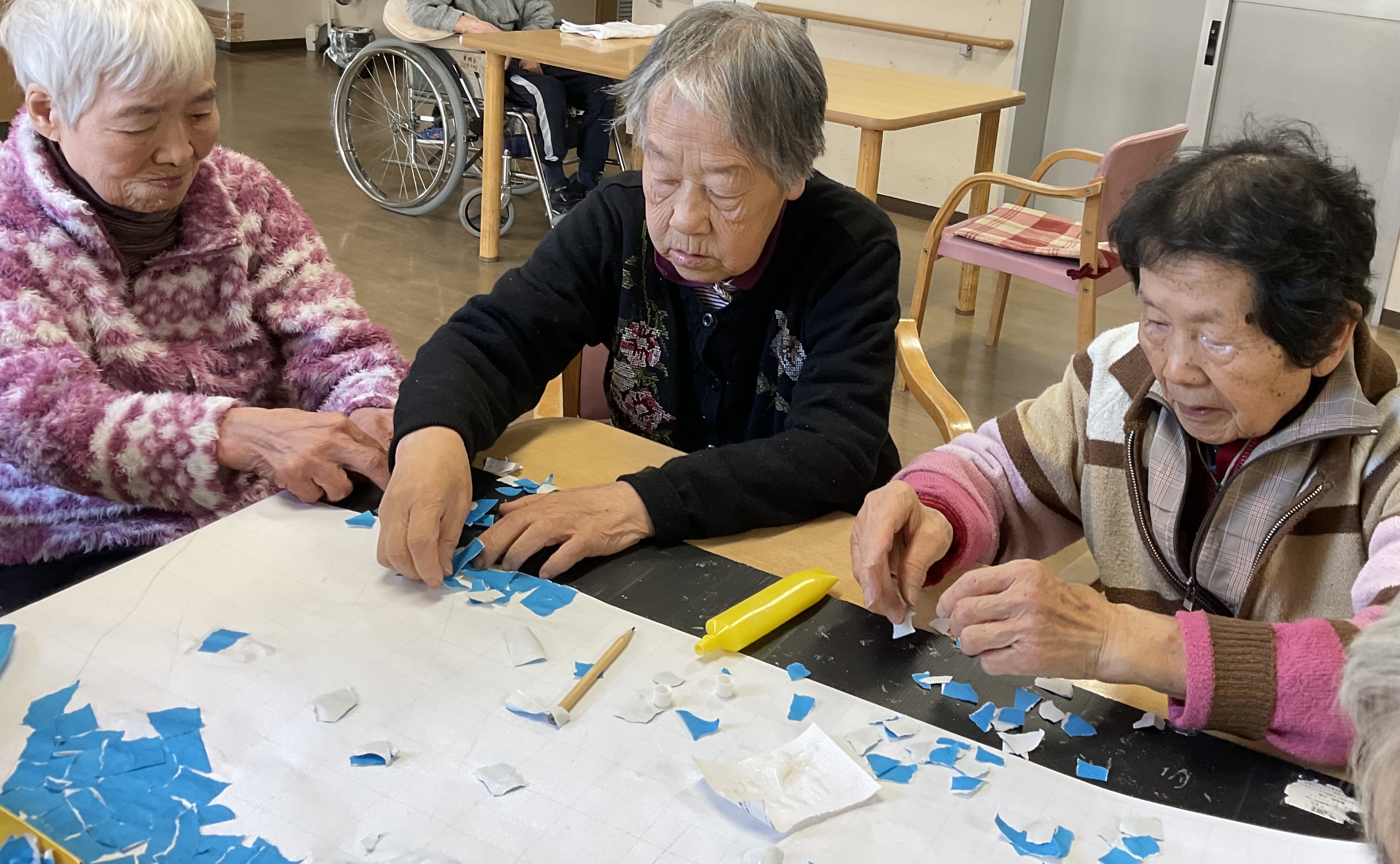 来年用の壁面作りのちぎり絵に取り組んでいます💪🏻