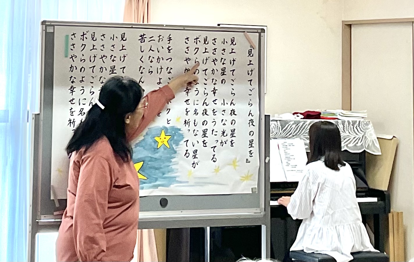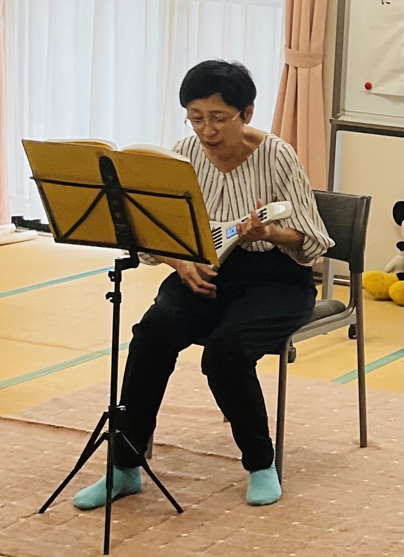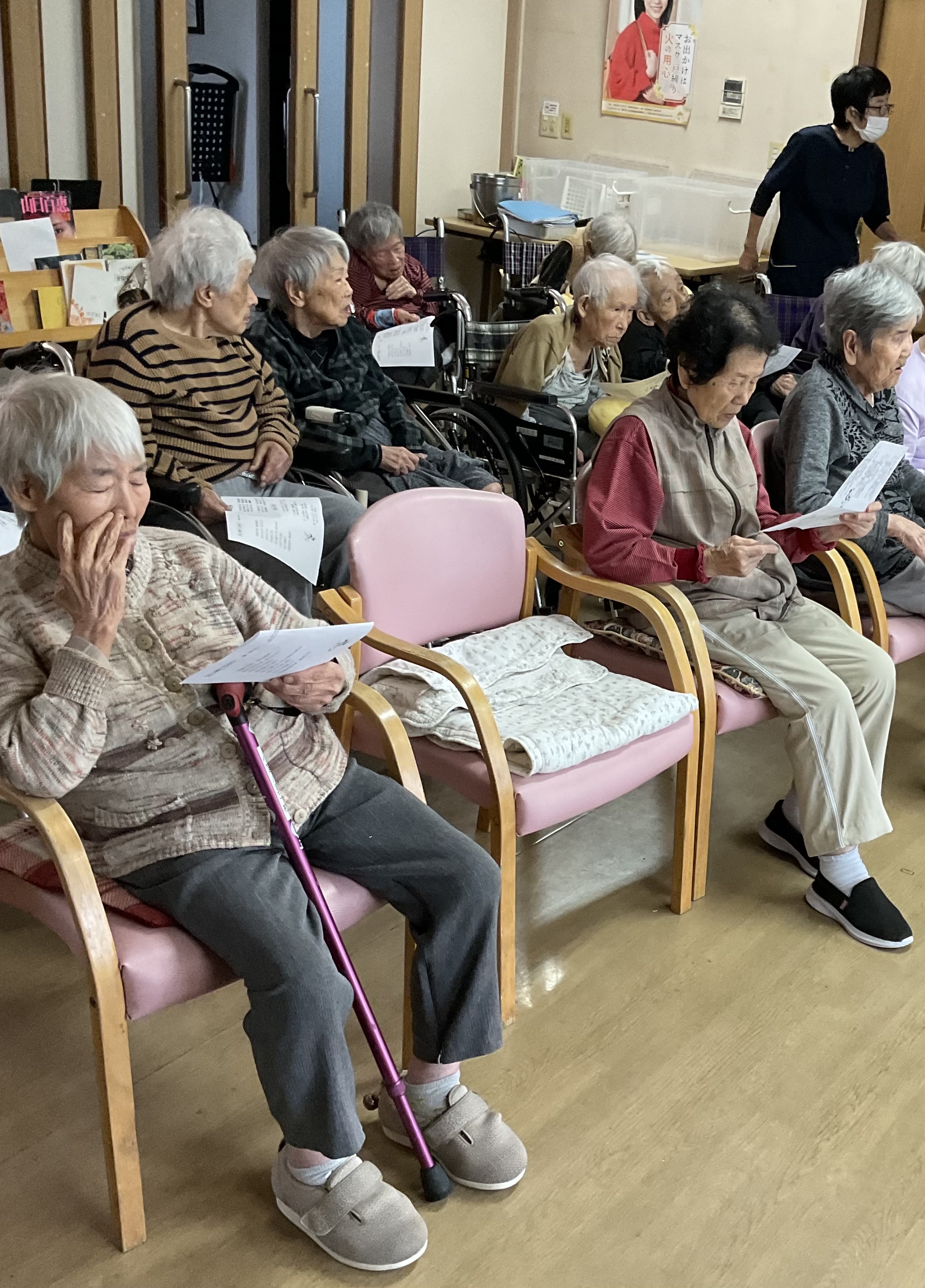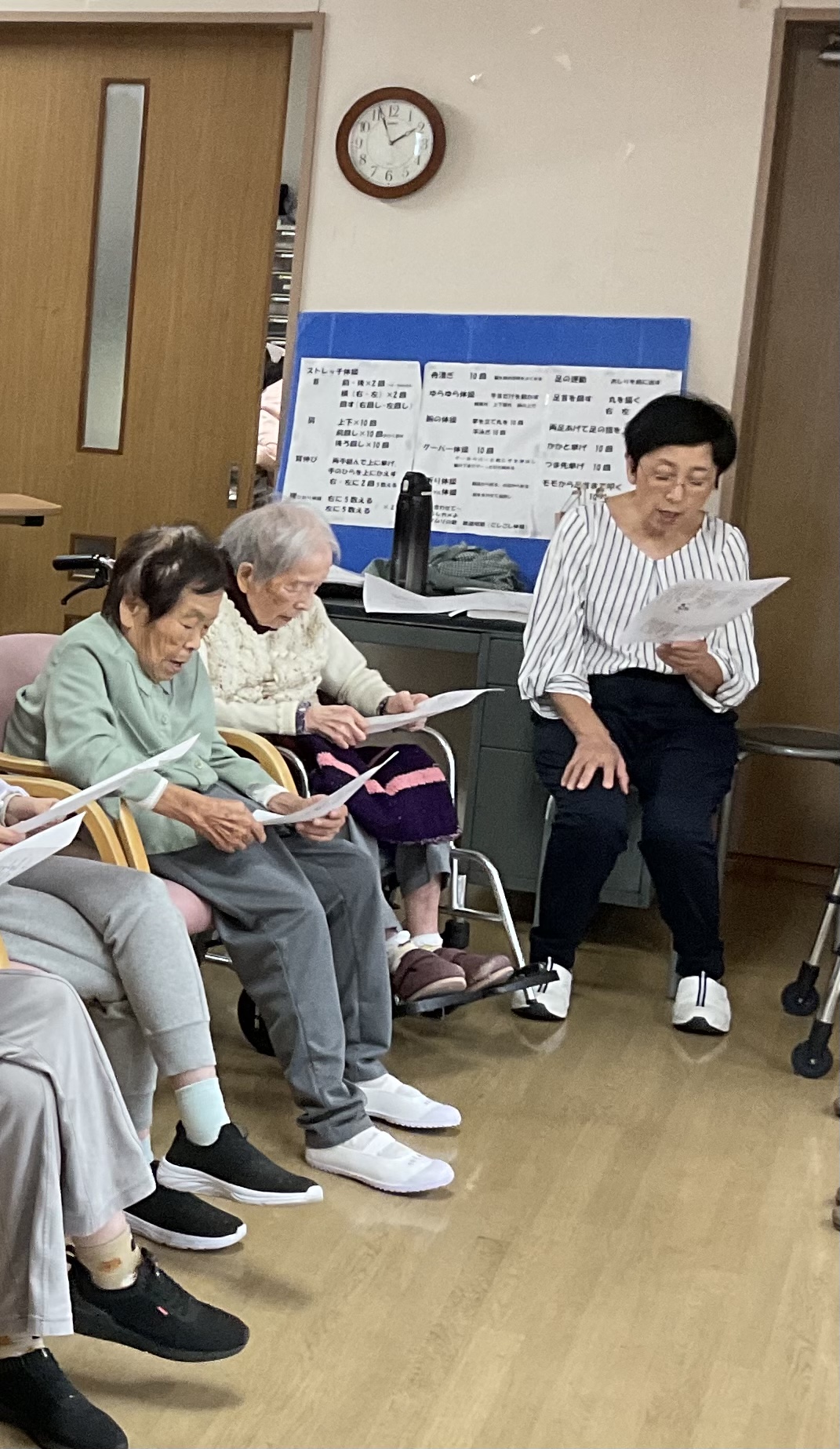 秋にピッタリな歌を歌いました。皆んなで歌うと元気が出ますね
