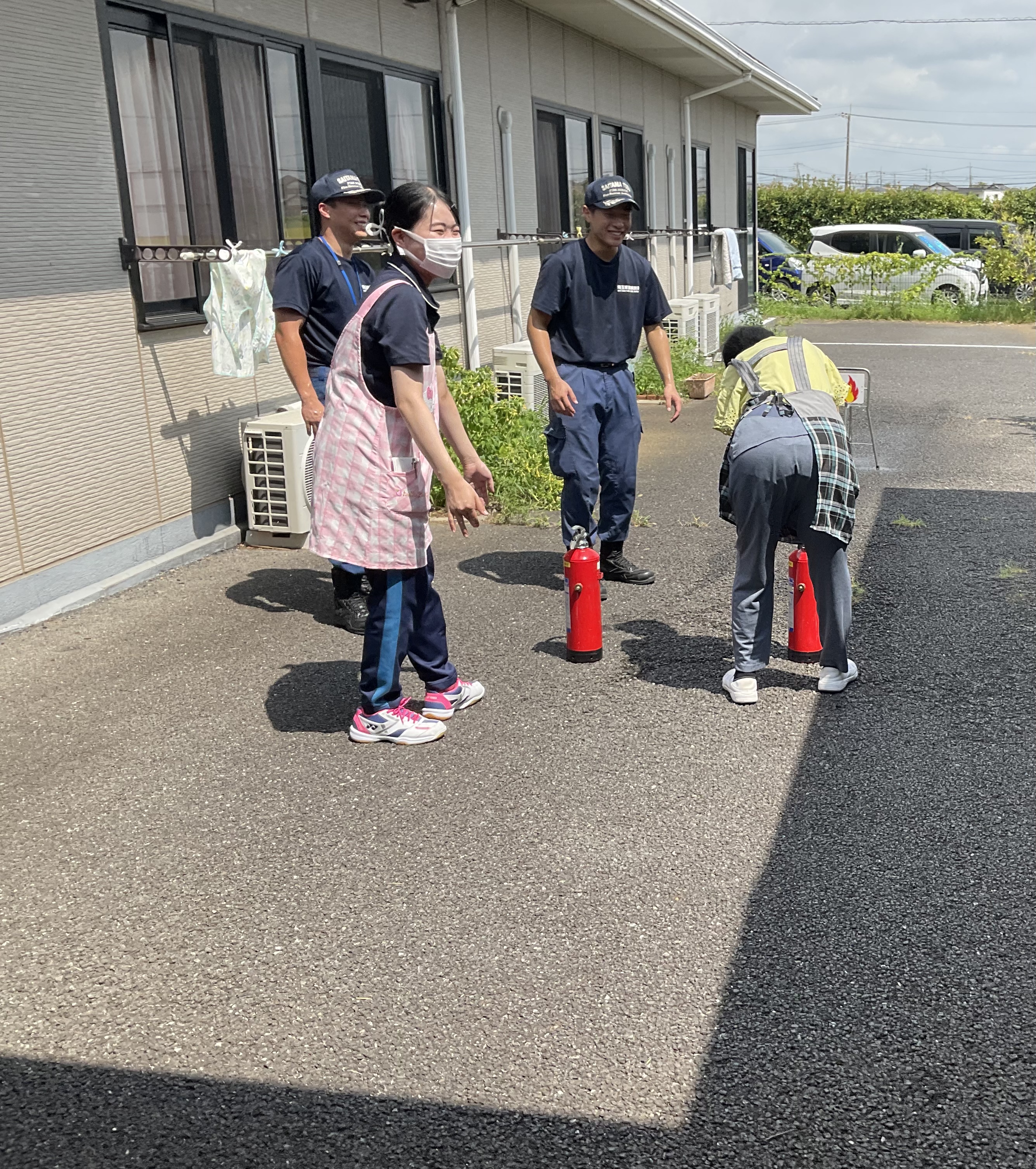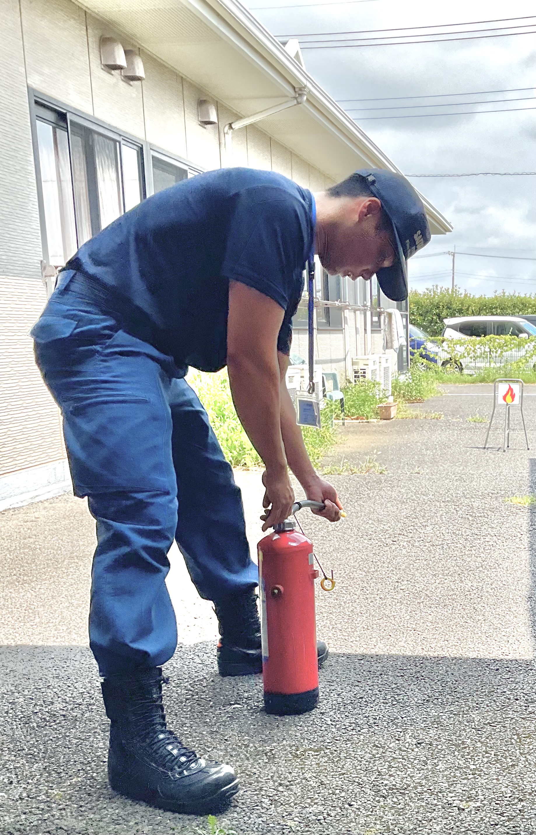 今回は水消火器を使用し、的を狙いお水をかけます。