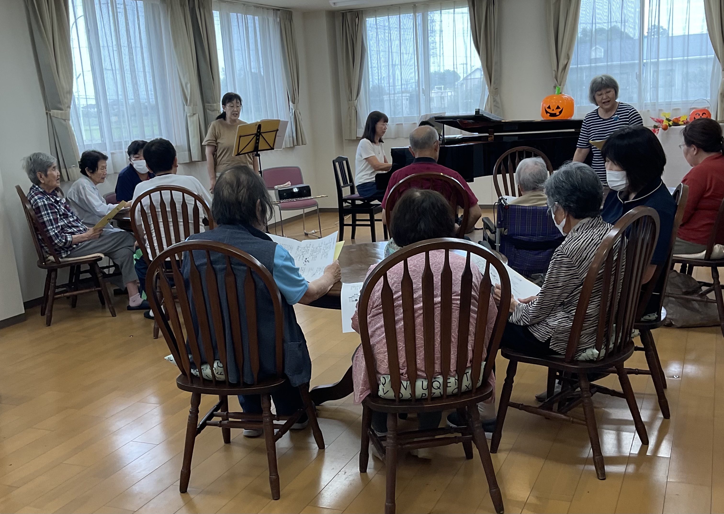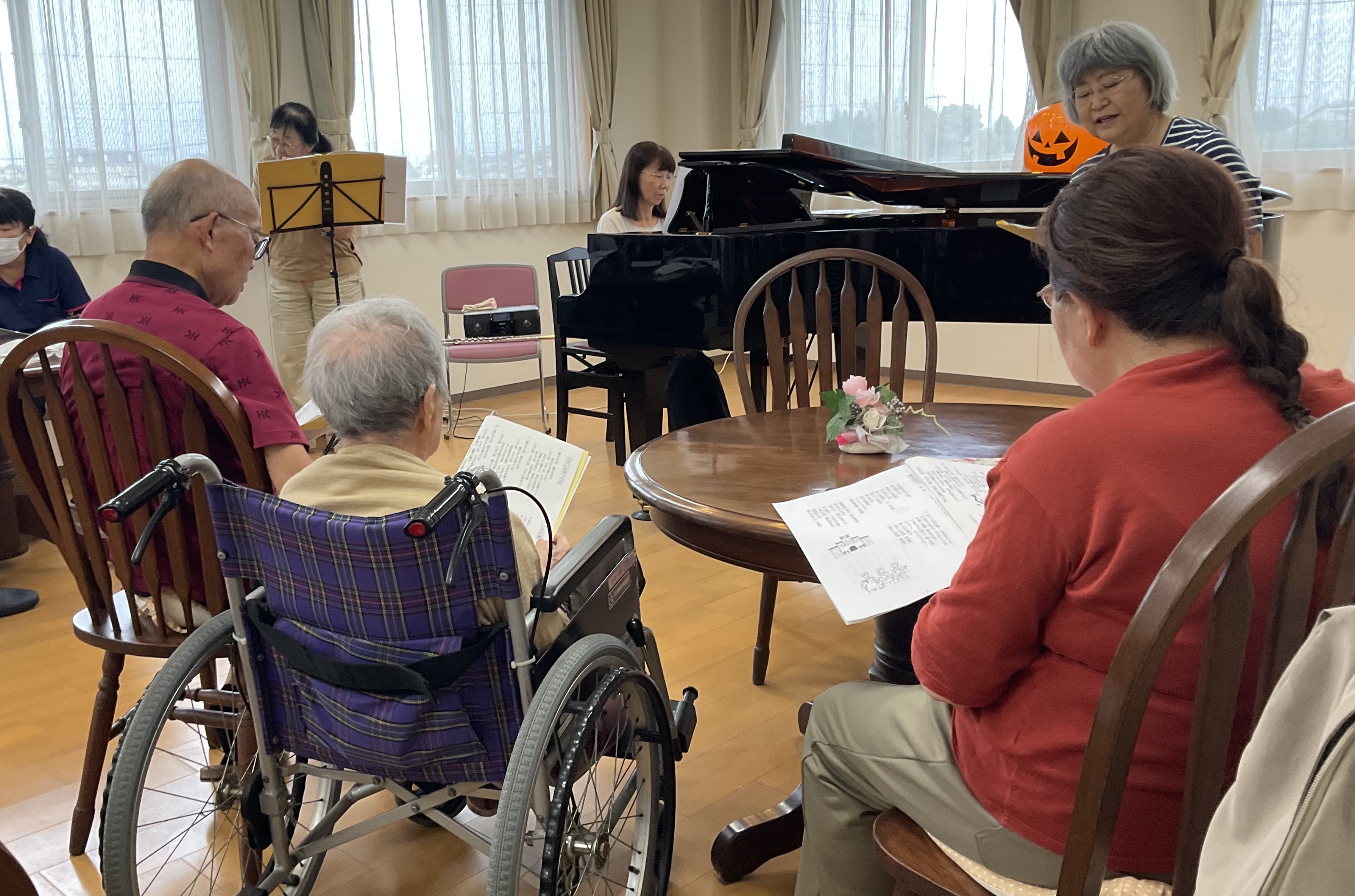 ご報告が遅くなりました。歌声喫茶が3回目となりました。グランドピアノのある部屋で、コーヒーをのみながら、大きな声で歌いましたよ。フルートの奏でる『秋桜』に始まり、『学生時代』や『また逢う日まで』など青春の歌に皆さん生き生きとされてました。今回は何とピアノの先生が、歌劇『椿姫』の中の『乾杯』を歌ってくださいました。まるでオペラ会場にいるようで、得した気分でした。次回は12月です。是非ご参加くださいね。お隣のケアタウンさんも来てくださいました。ありがとうございました。