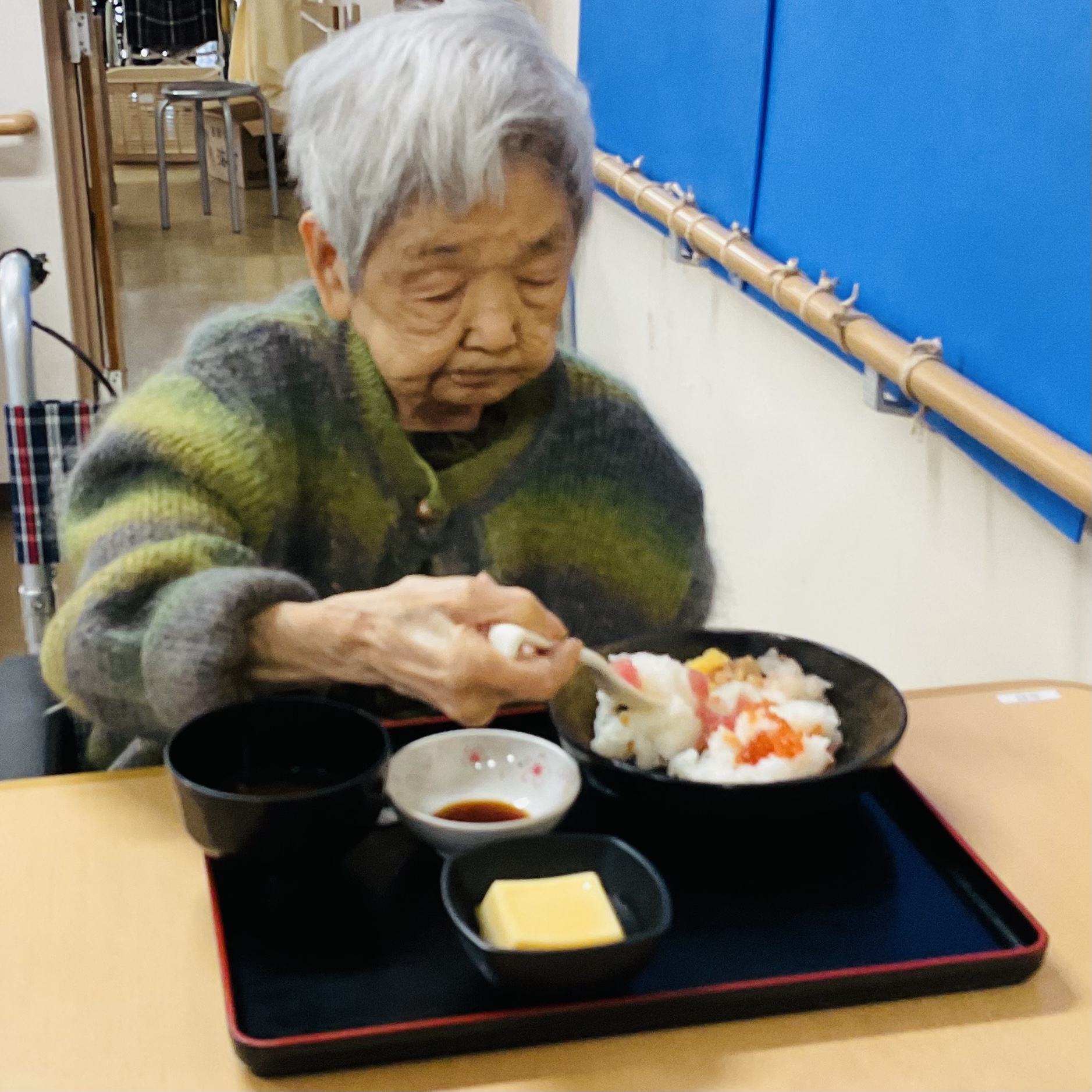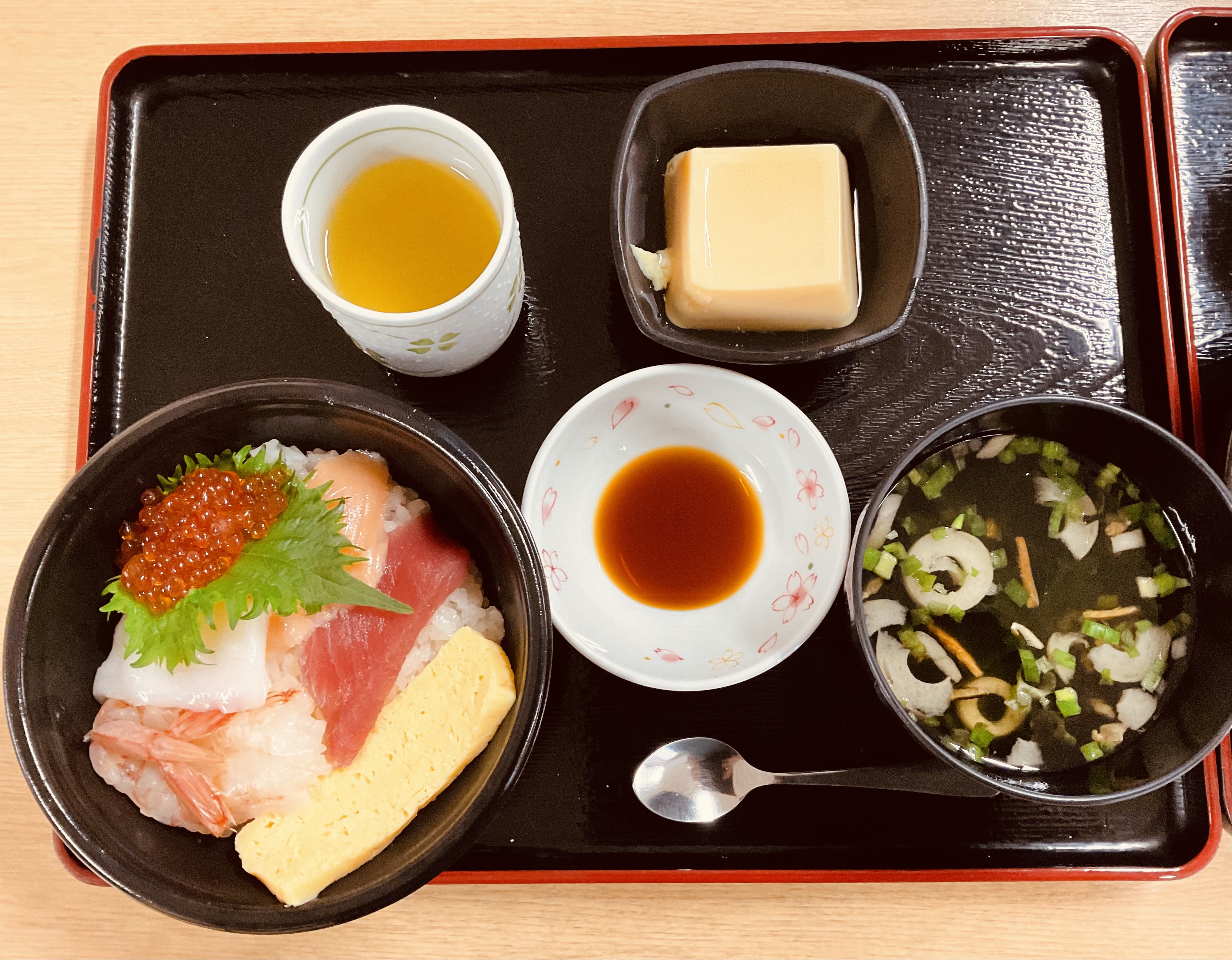 お昼のイベントで、はま寿司で海鮮丼を頼みました。