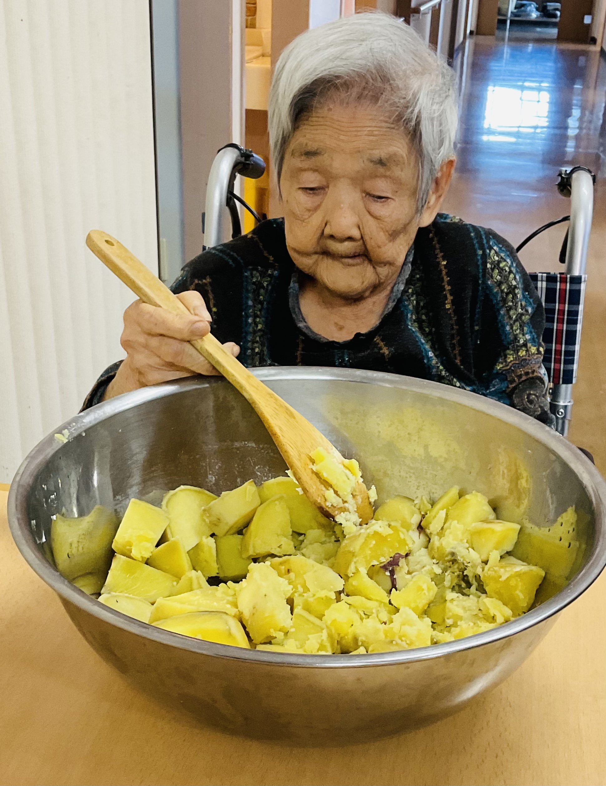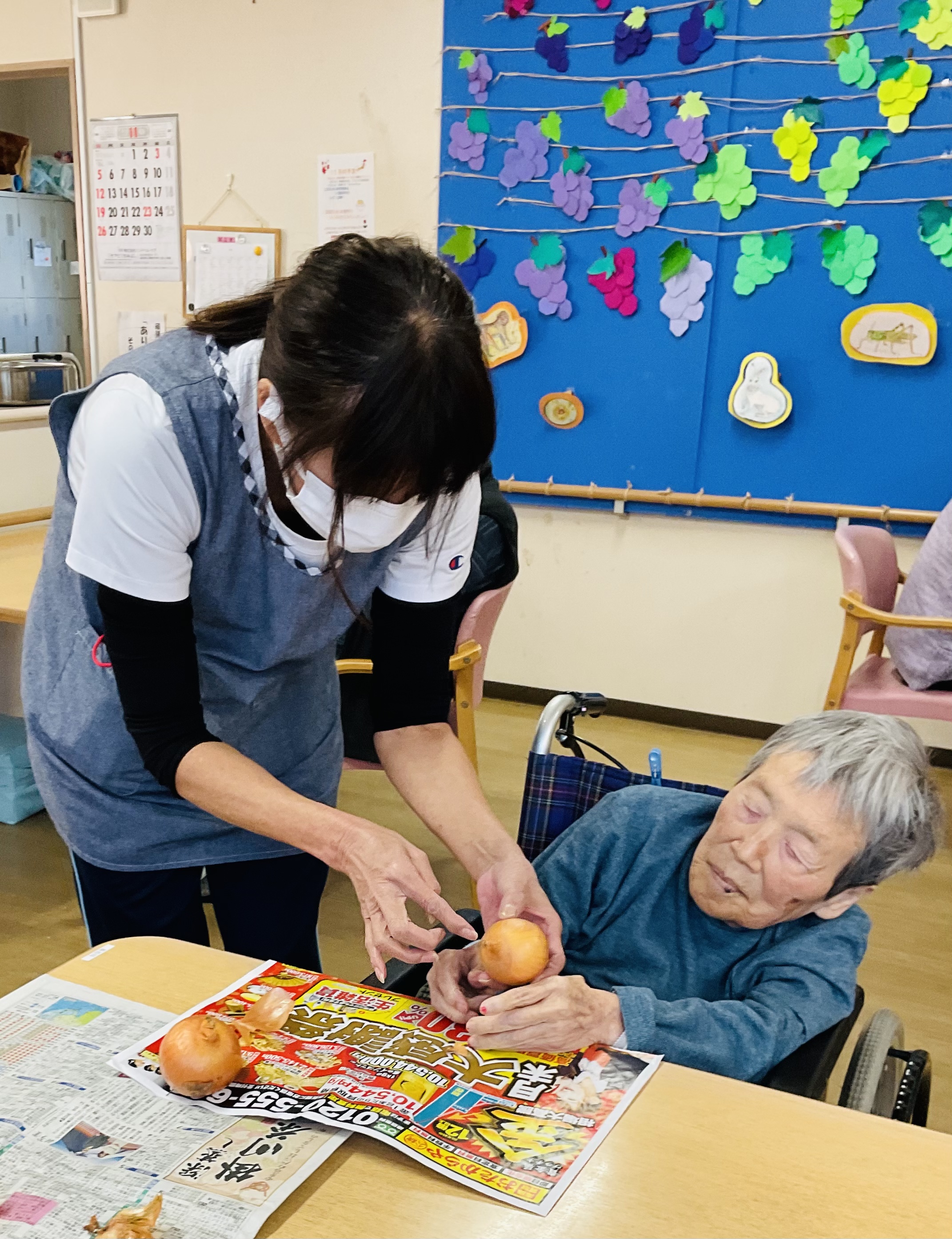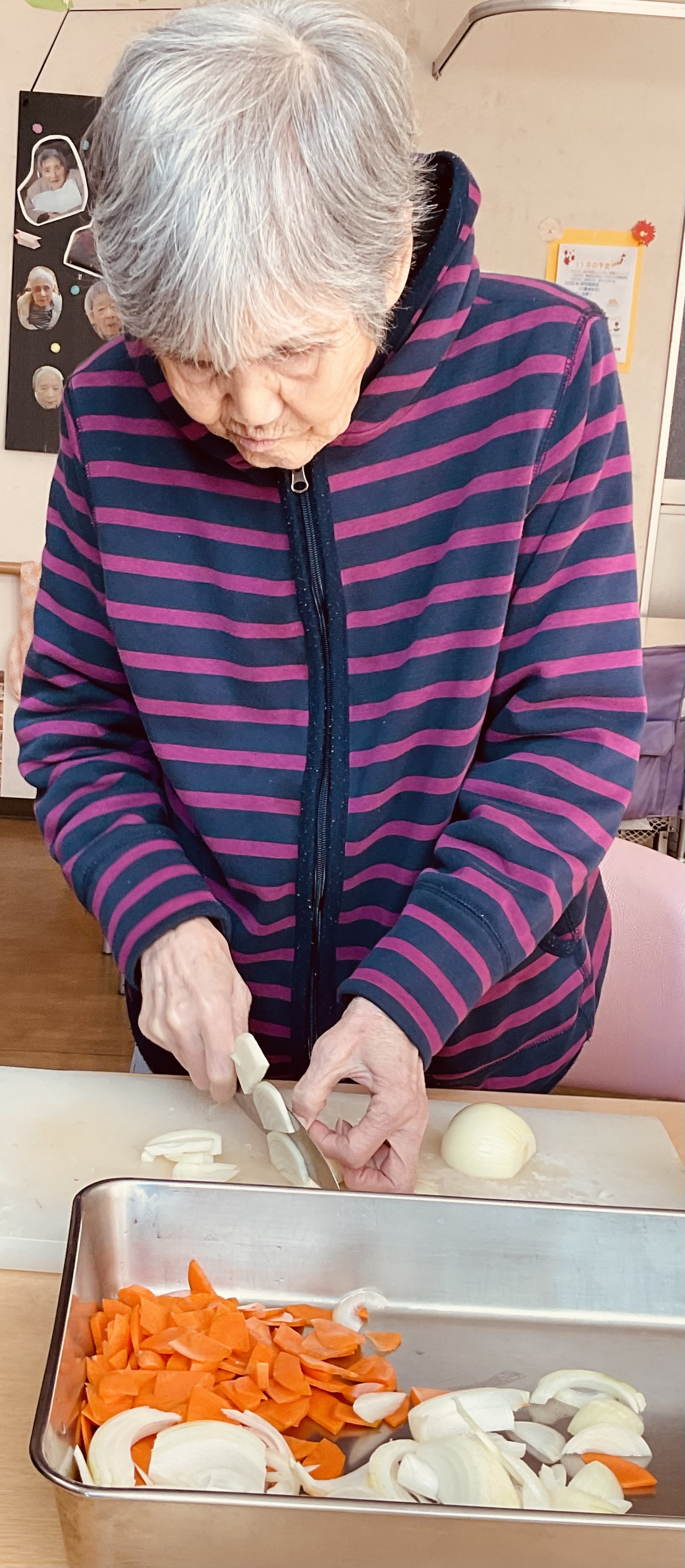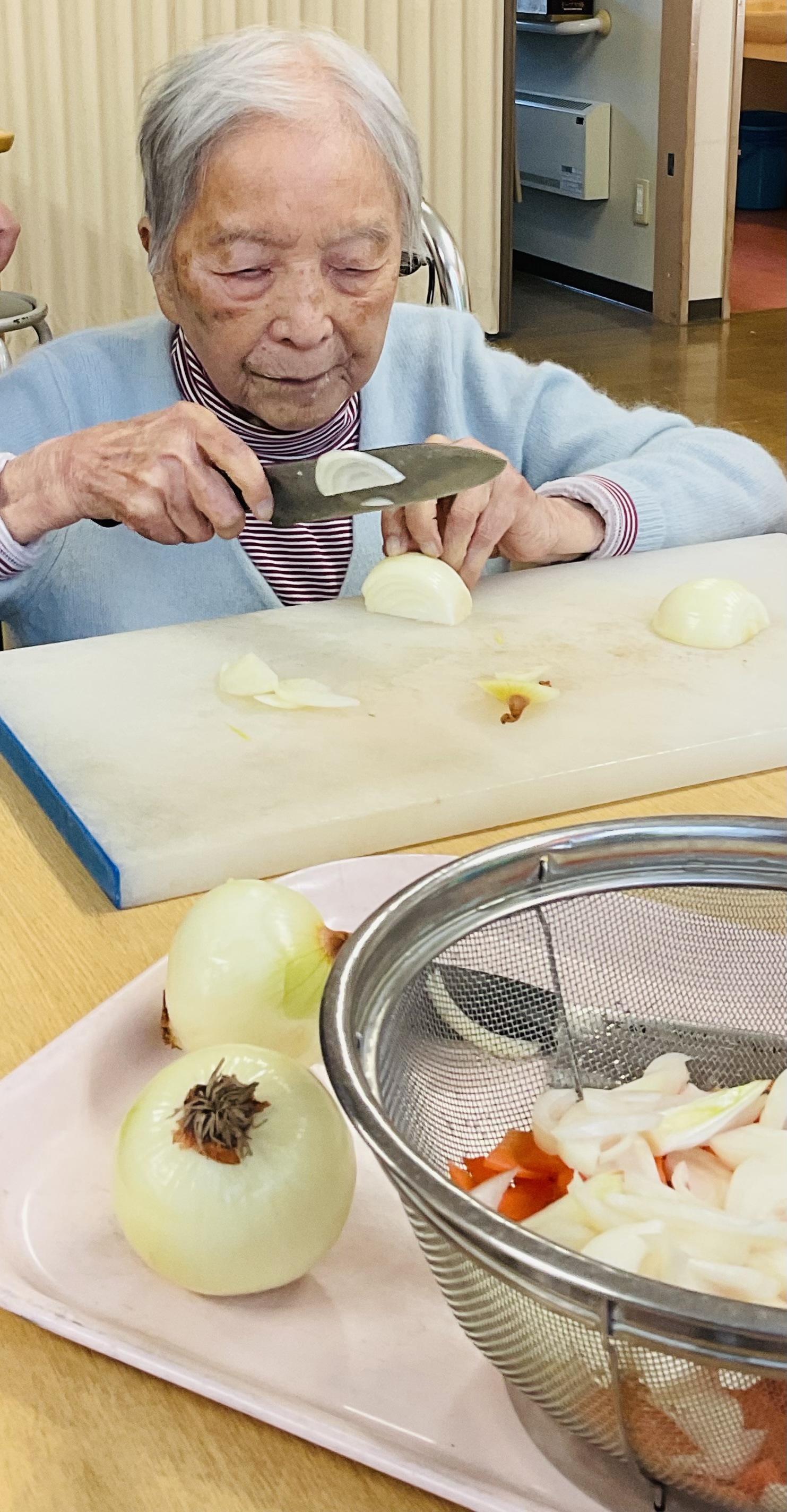 ご利用者様も、玉ねぎや人参をスライスし手伝って下さいました。
