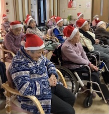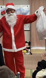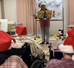 ご利用者さまに、クリスマスの赤いサンタの帽子を被っていただいたら、気分はすっかりクリスマス!フルートやピアノのクリスマスソングの調べに、いつものフロアは、クリスマス会場に!サンタクロースまで登場して、歓声があがりました。去年は、コロナ感染対策のため、クリスマスは中止となったのでした。今年は、クリスマスコンサートができ、良かったでーーーす。