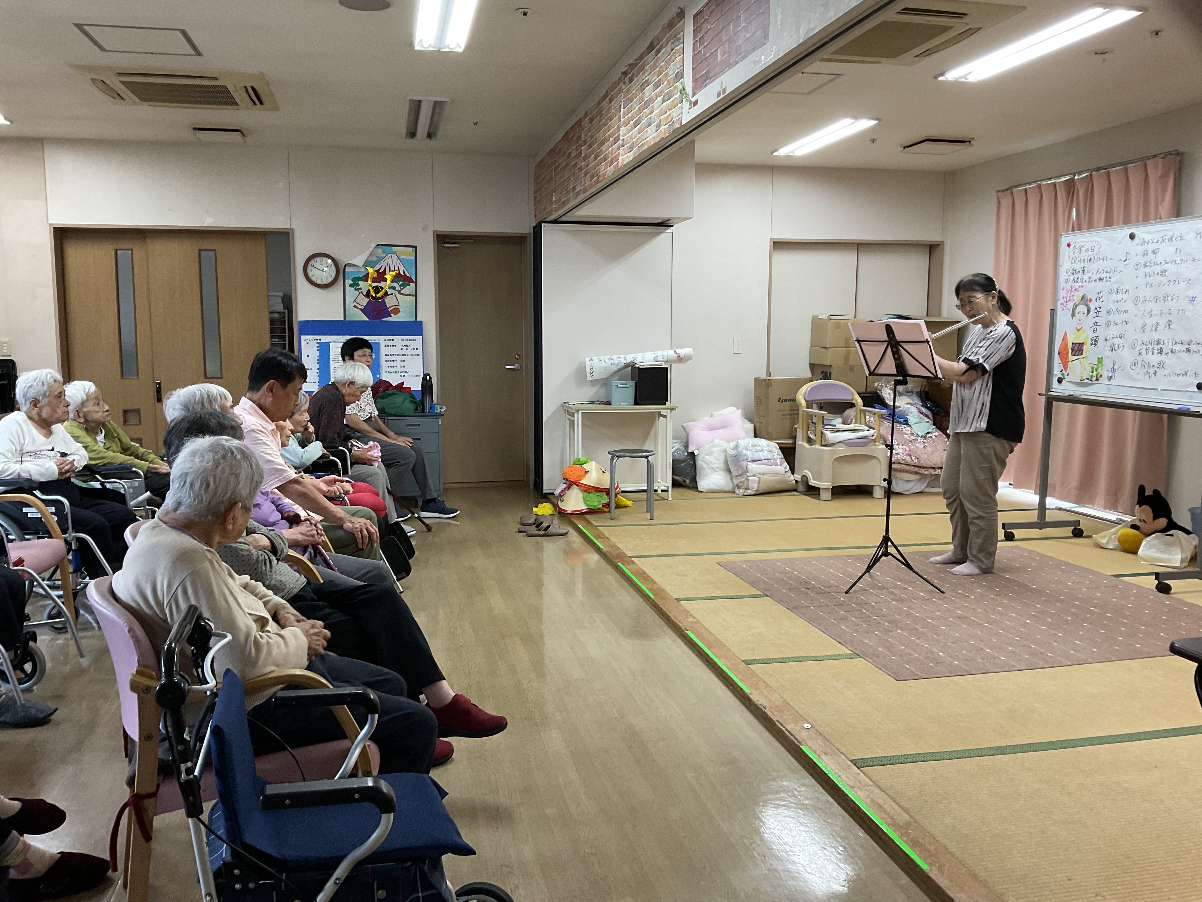 ご利用者様はピアノ、フルートの素敵な音色に耳を傾けていらっしゃいました。