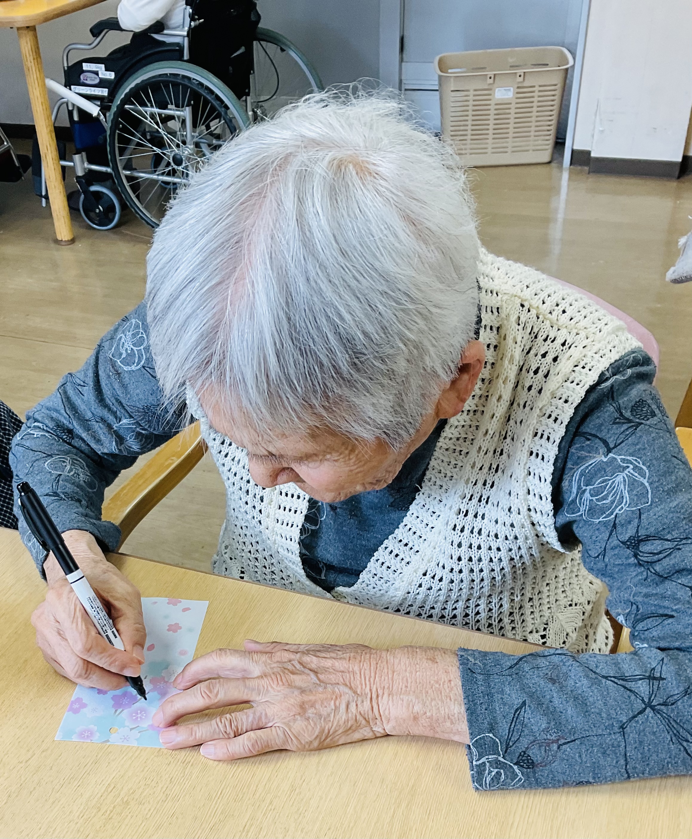 ご利用者様に短冊を書いていただき、笹の葉に飾ります。