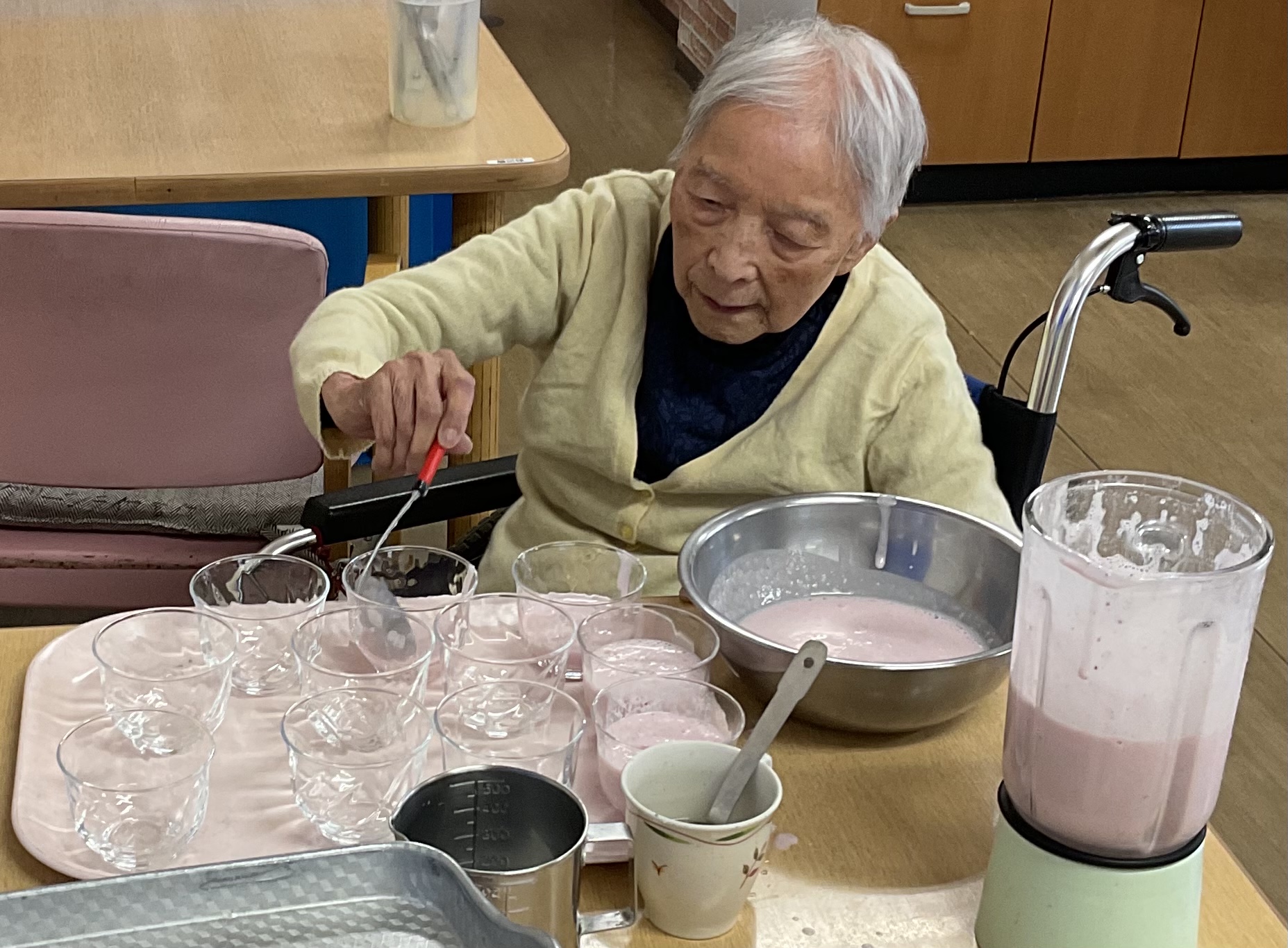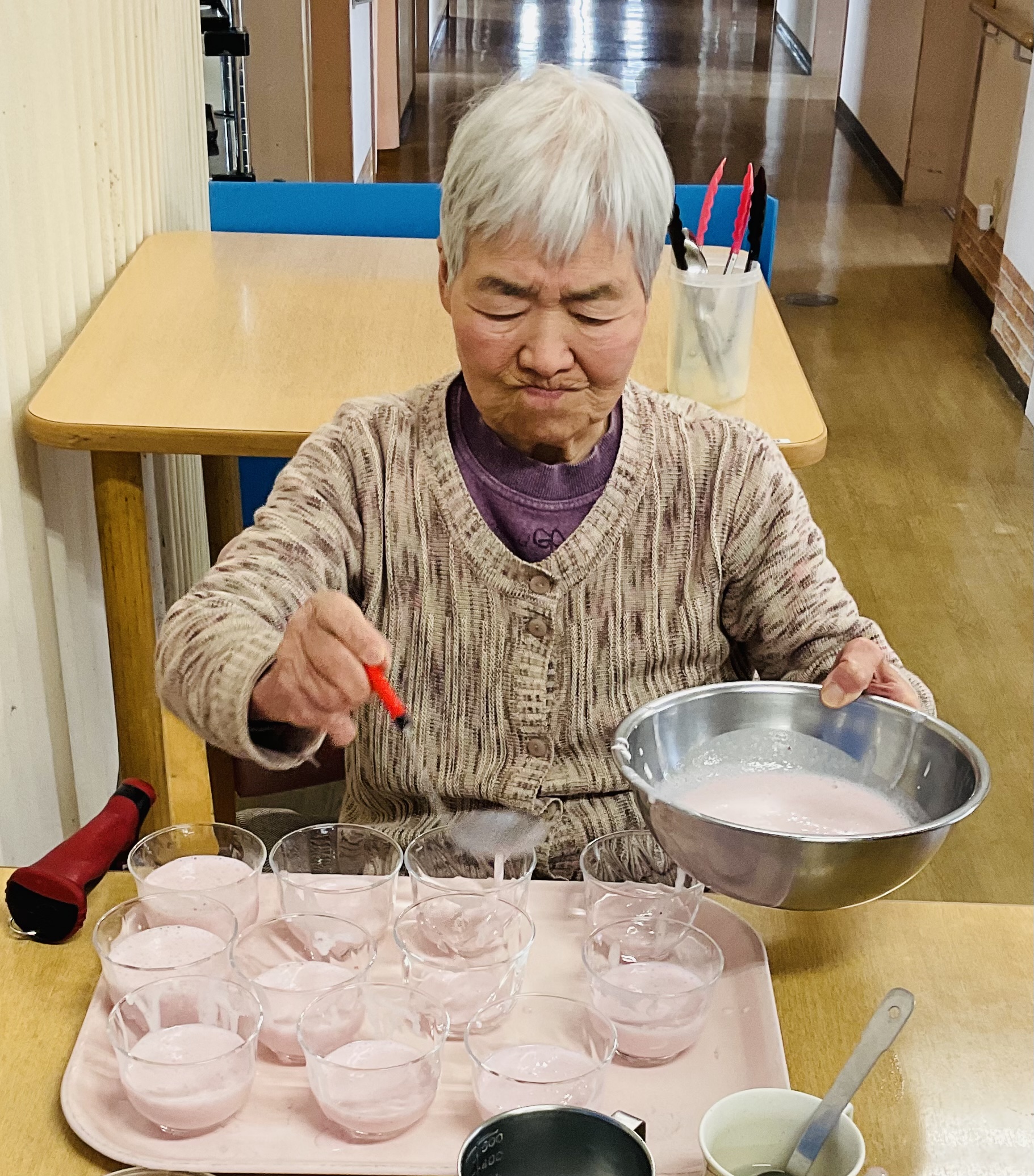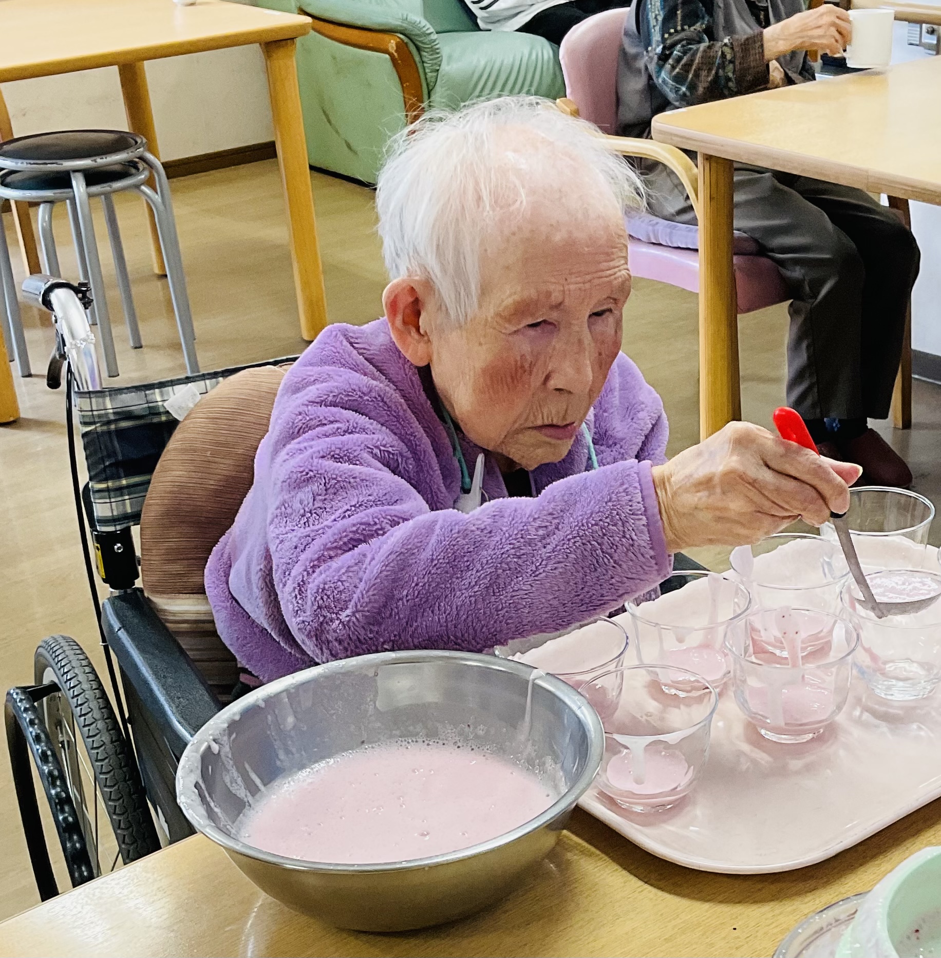 春らしく皆んなでいちごプリン🍓🍮を作りました。