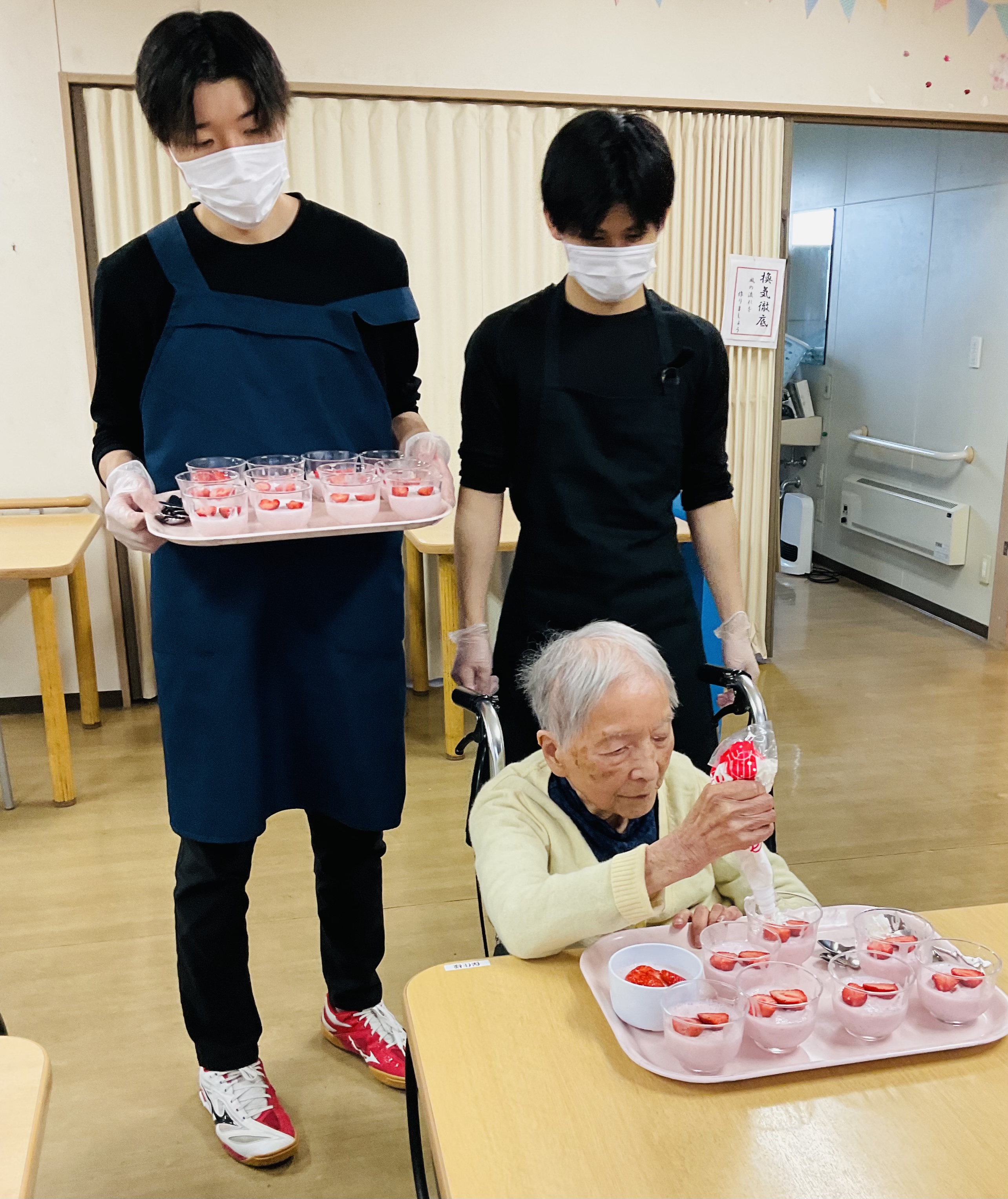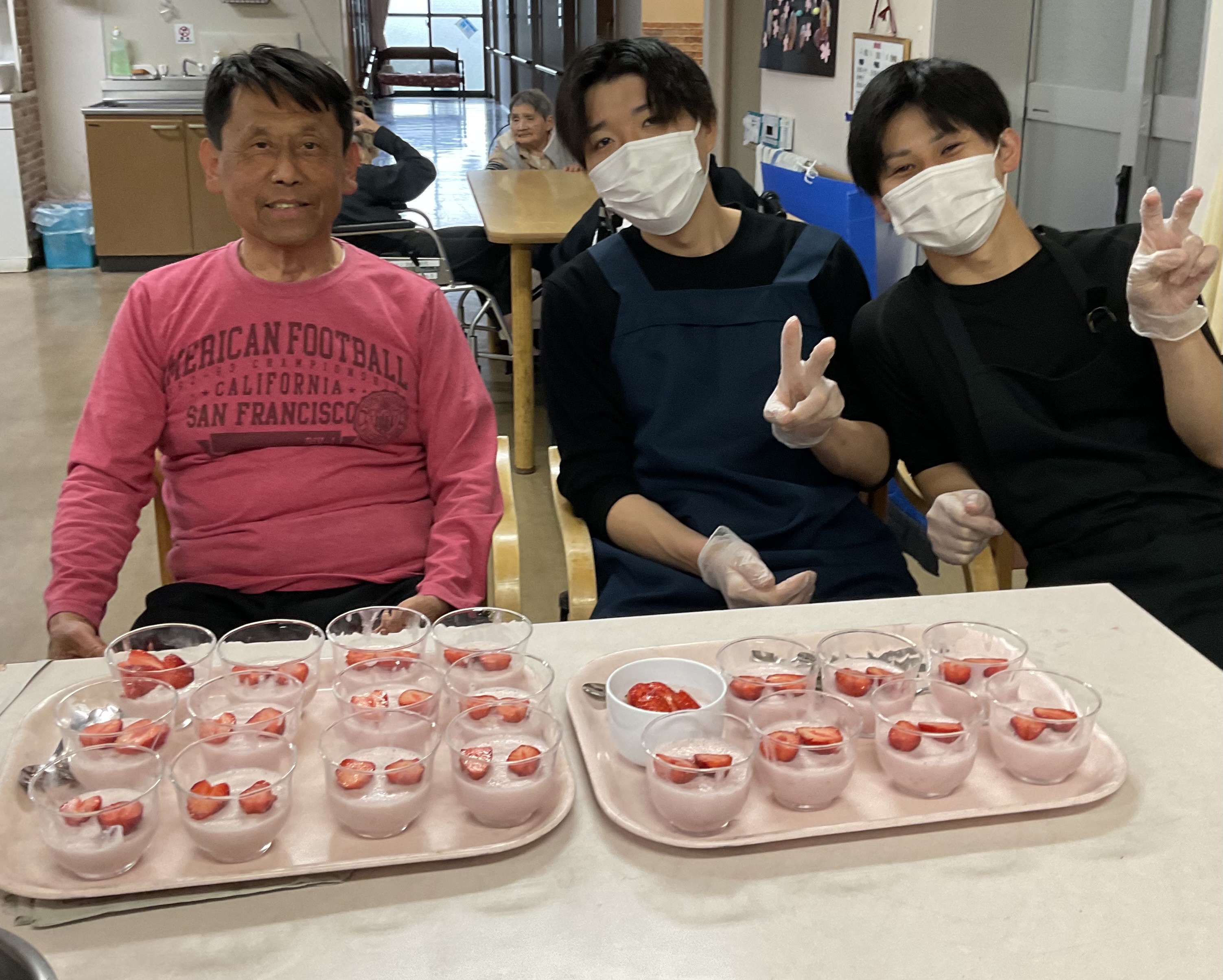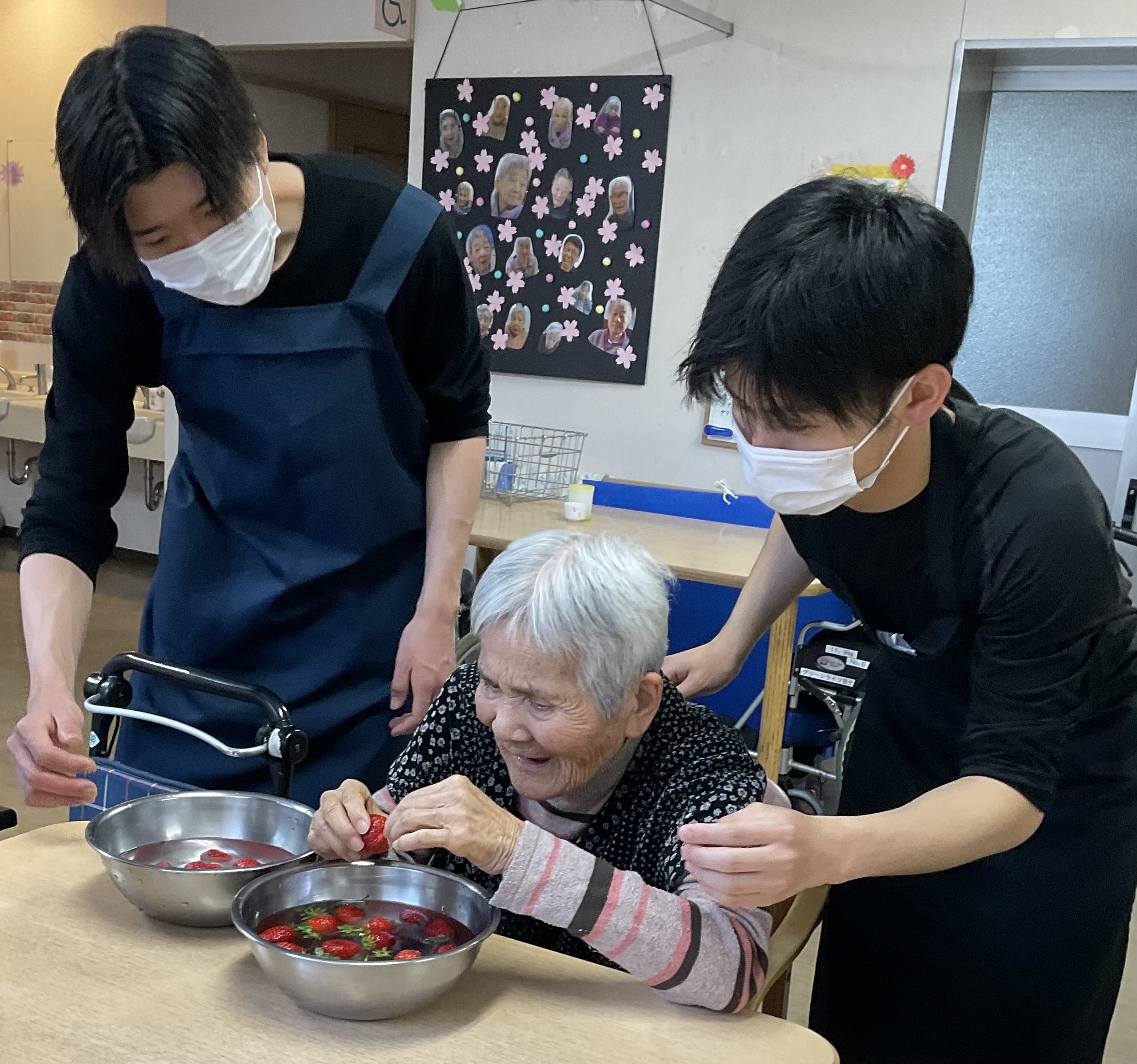 大学のボランティアさんも来てくださり、利用者様と一緒に苺を