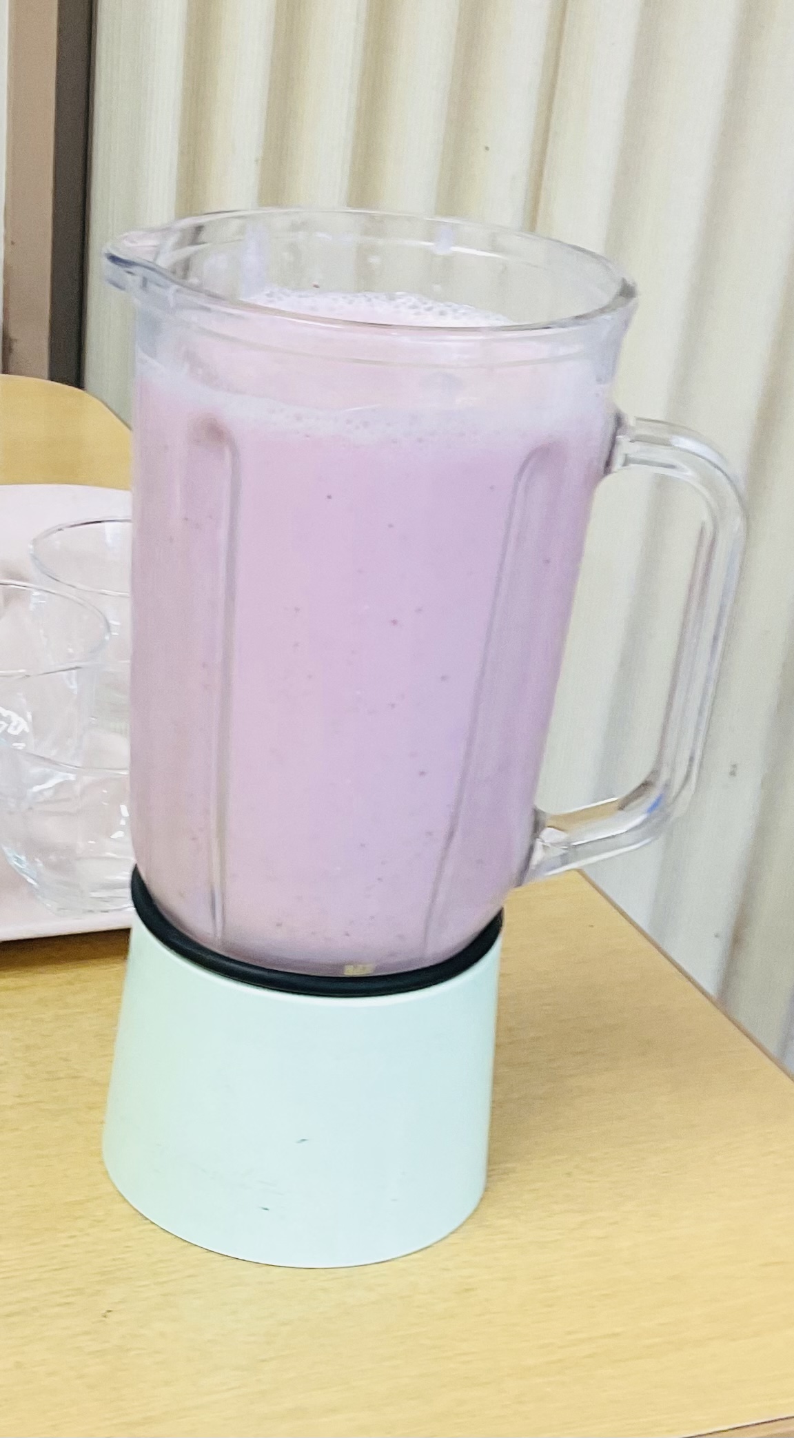 イチゴ、牛乳、ゼラチンをミキサーにかけ