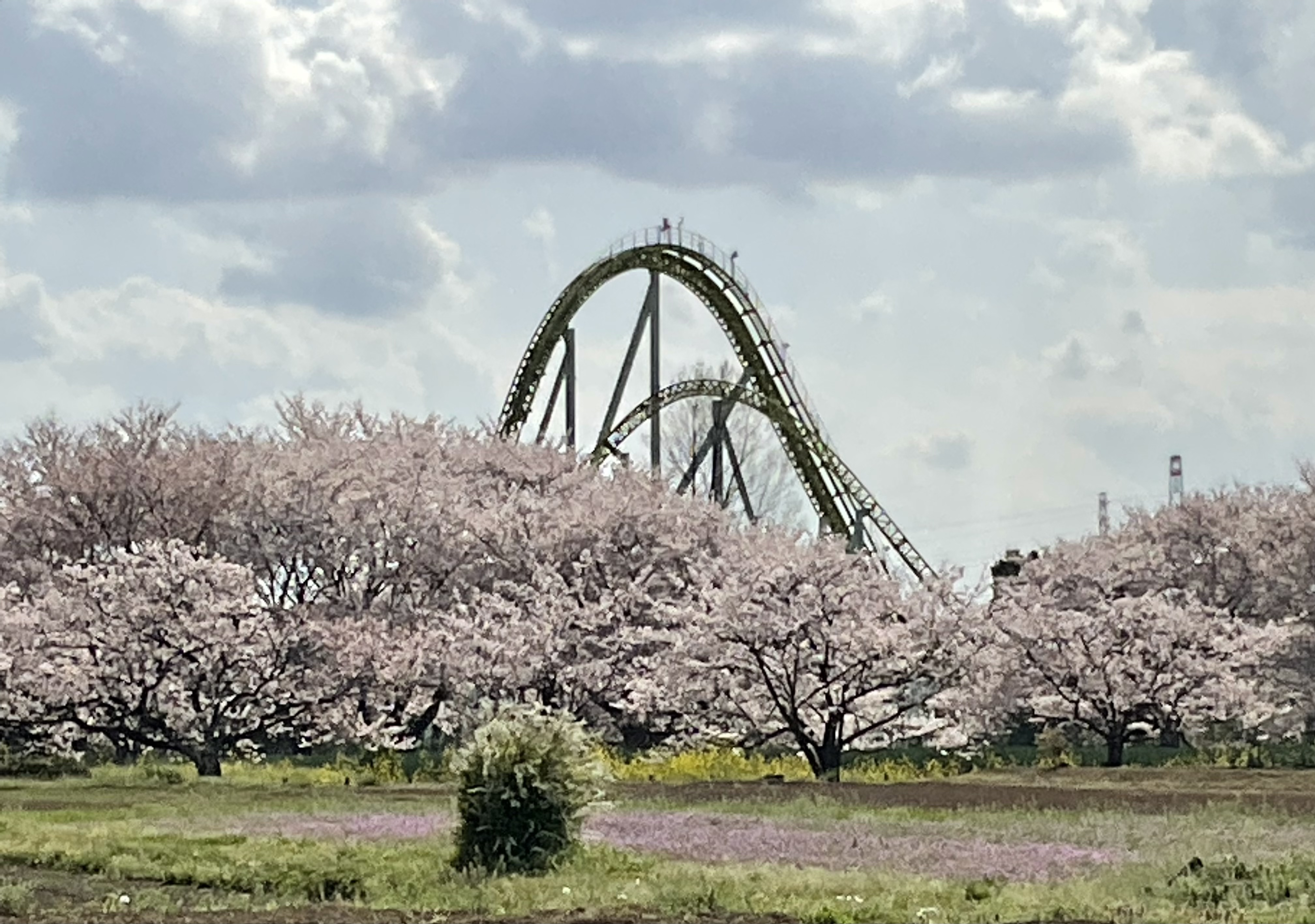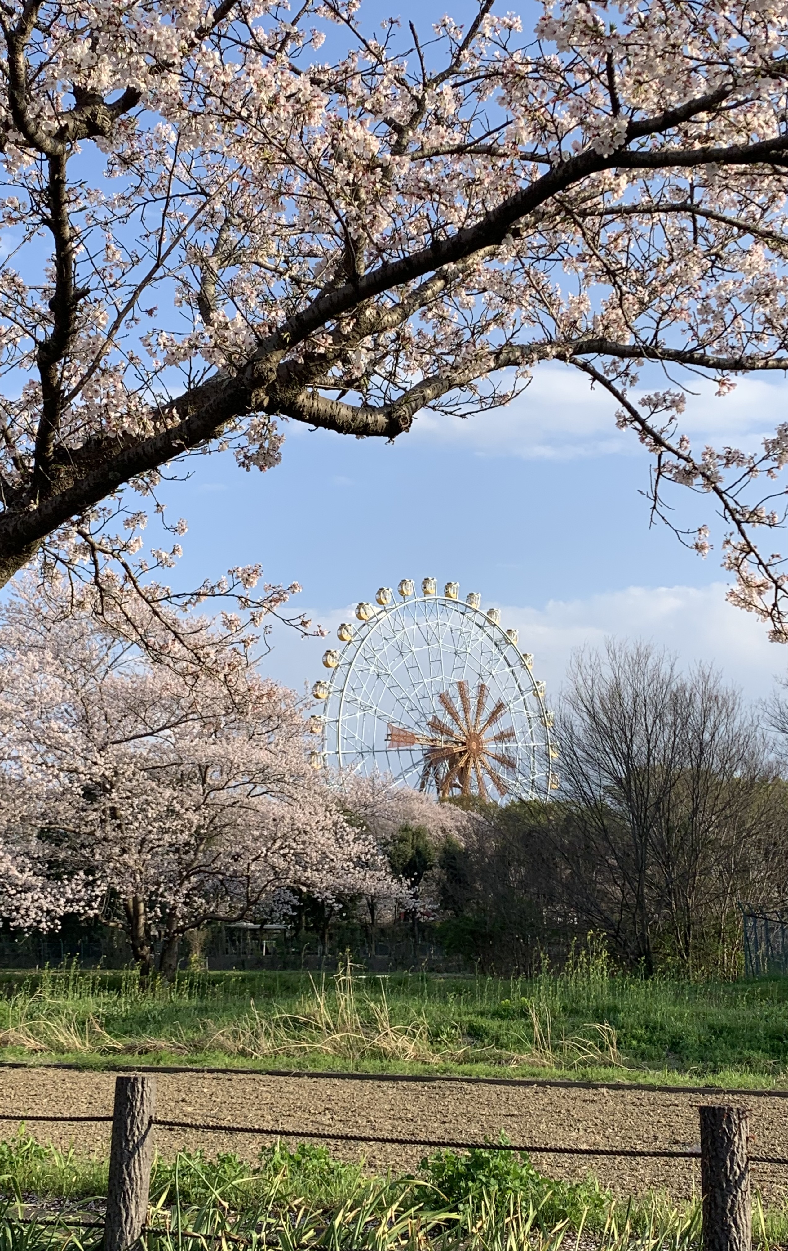 桜並木から覗く観覧車と桜🌸のコラボレーション
