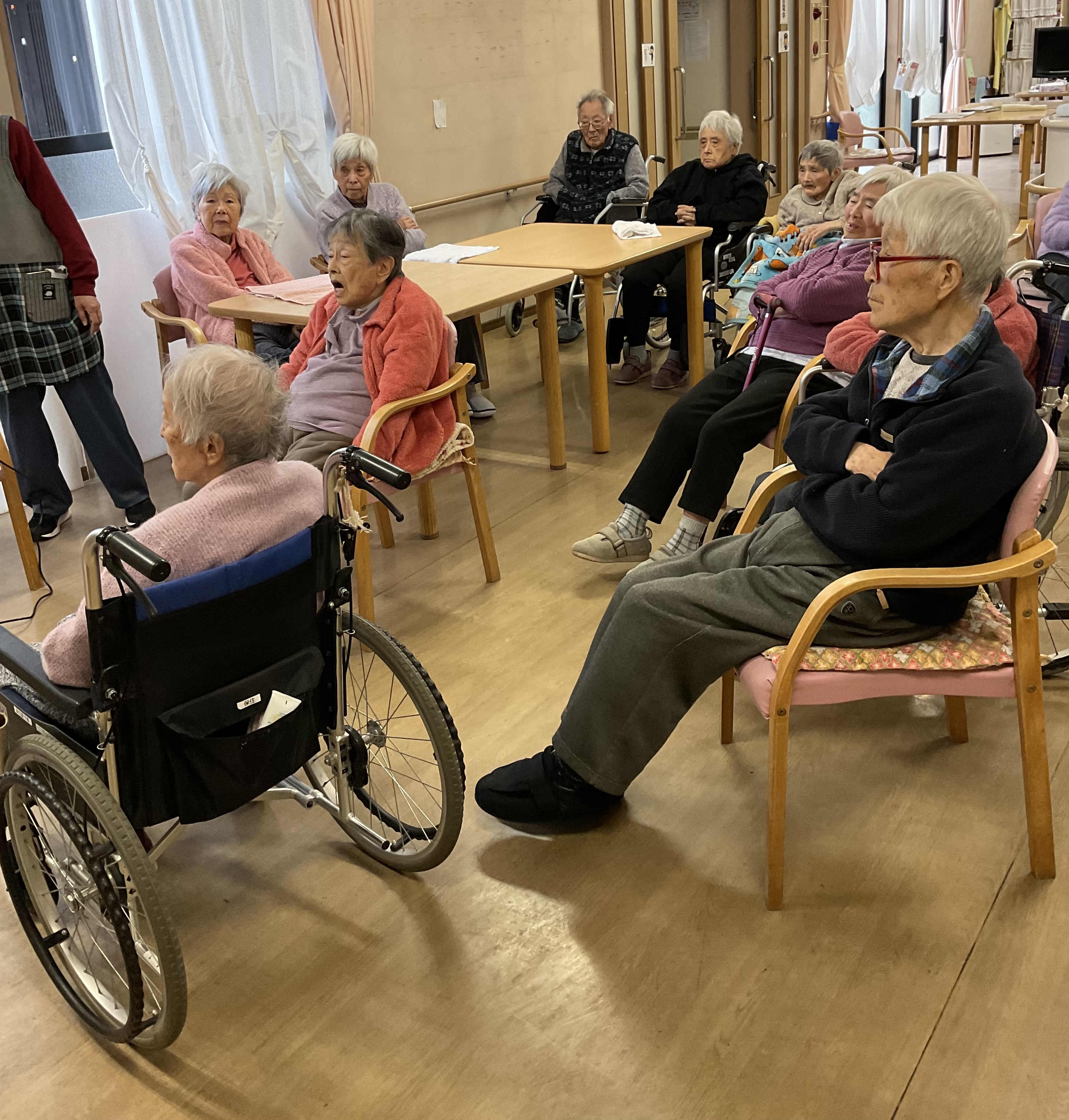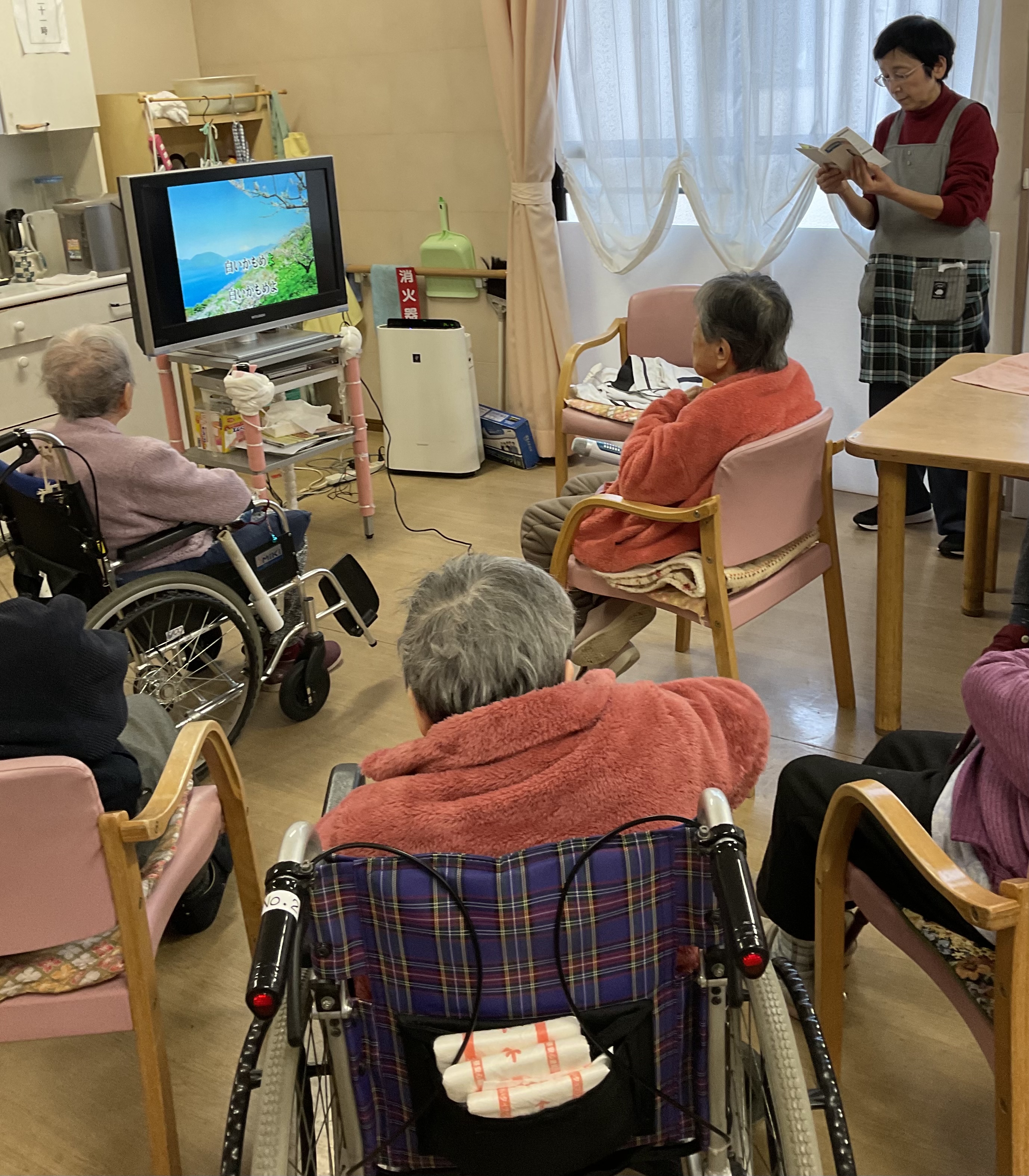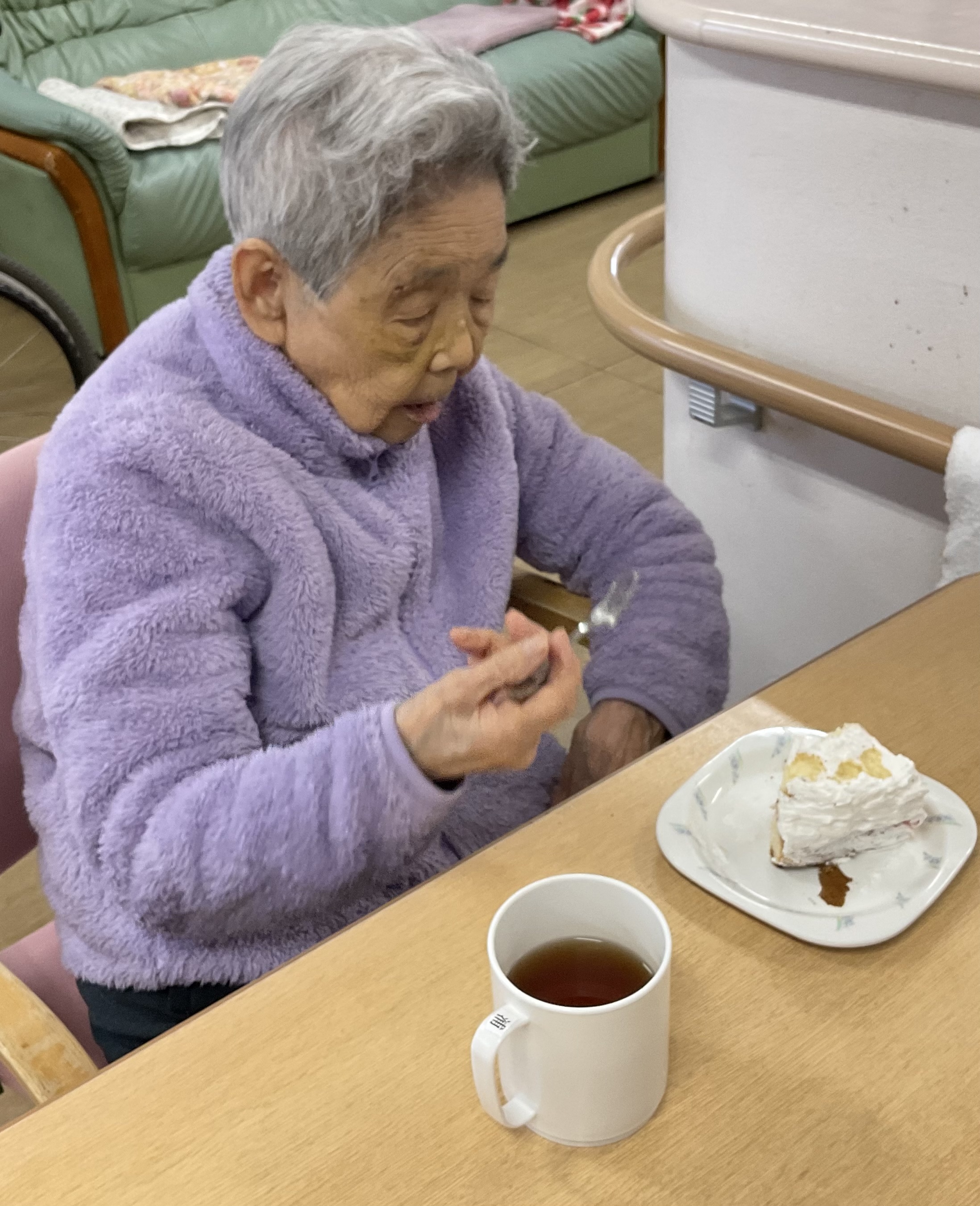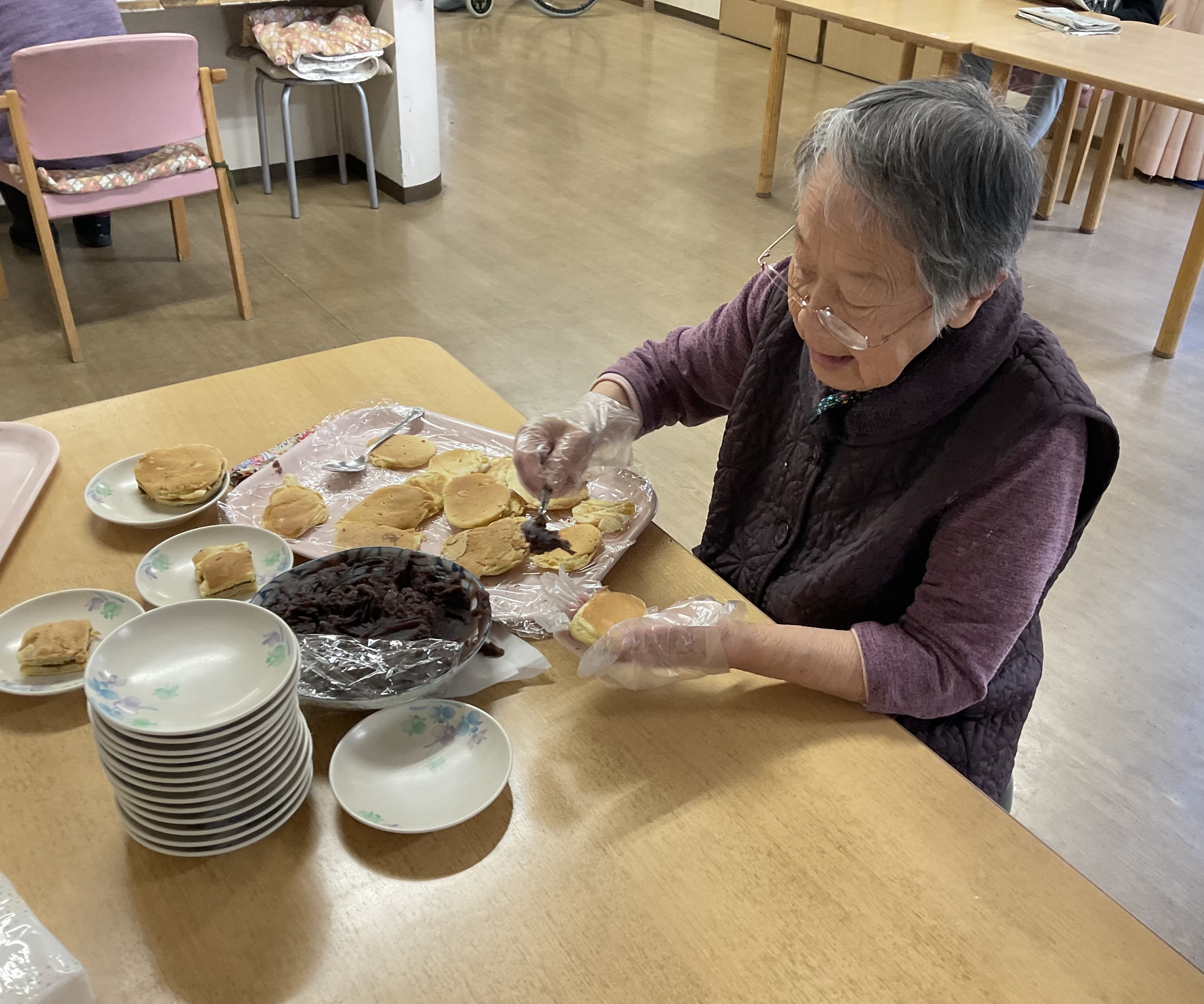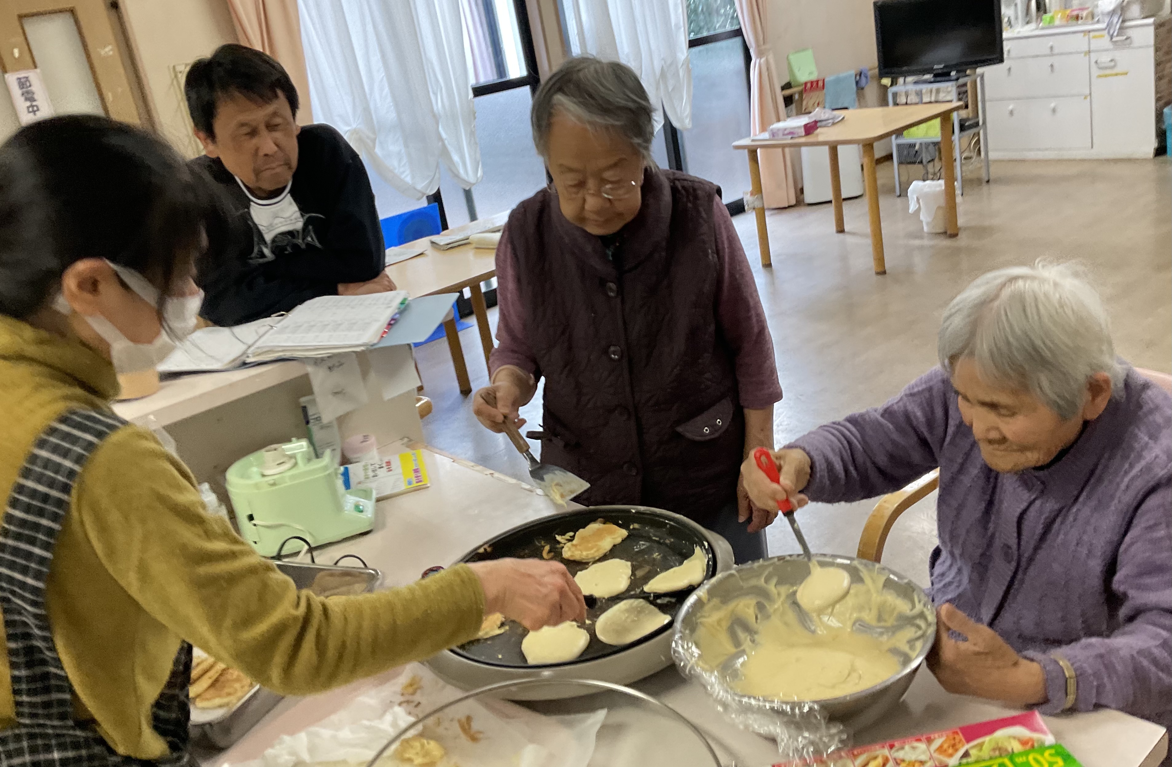 コロナ感染防止のため、中断していたレクやカラオケ。今日は、カラオケをやることになりました。歌の上手なF 様は、「時の流れに身をまかせ」と「シクラメンのかおり」を熱唱してくださり、拍手が湧きました。まだまだ、歌唱力に衰えはありません。歌の得意な職員のTさんも美空ひばりの曲を熱唱、聞き惚れました。そのかたわらで、おやつのホットケーキをS様とM様が焼いてくれました。あんこの入ったホットケーキ、余ったあんこは、あんこ玉にして食べていただきました。ゆったりとしたいい時間でした。(板)