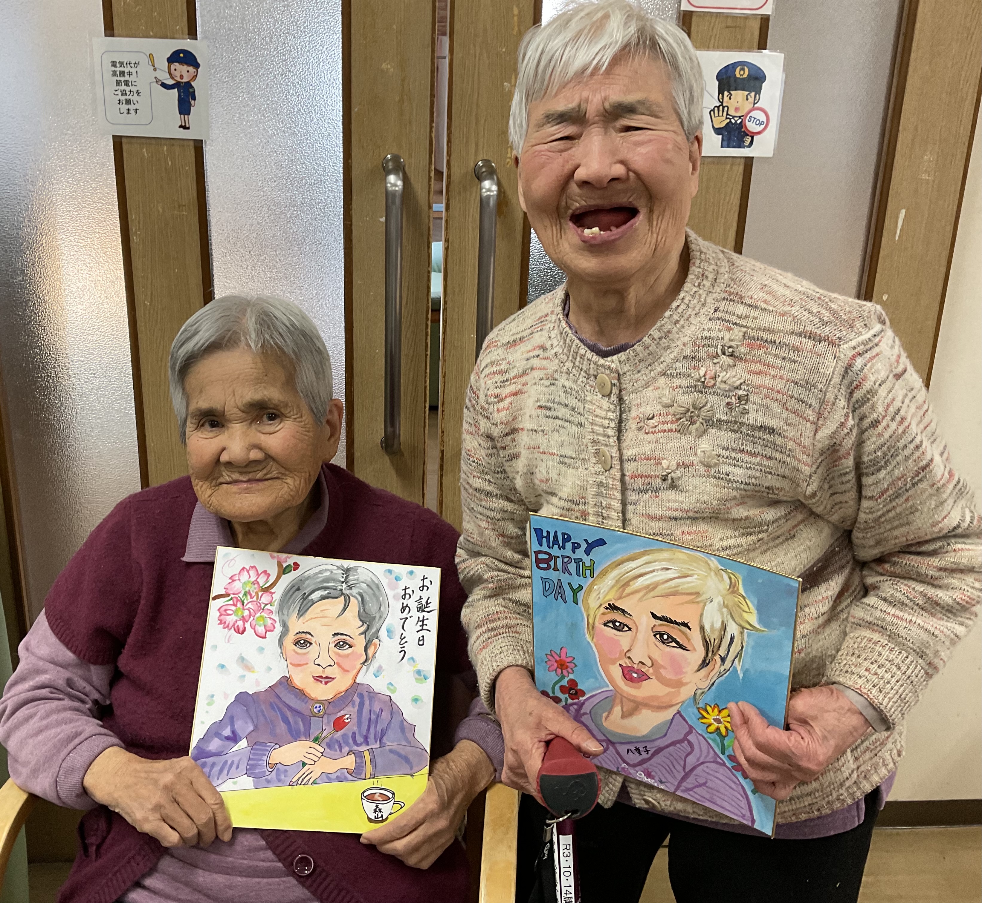 ハッピーバースデー🎉♬の歌を歌い、素敵な似顔絵のプレゼント🎁も