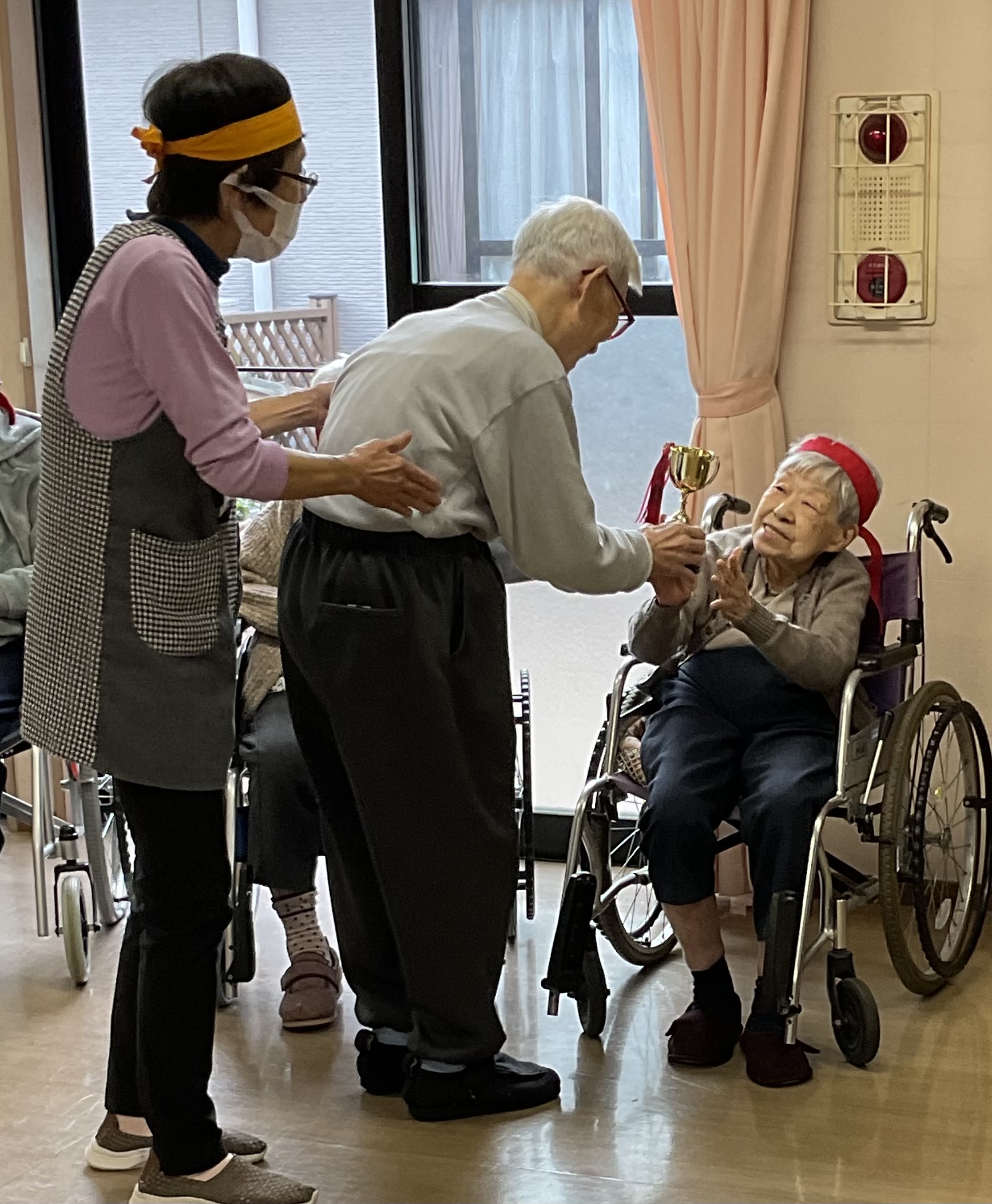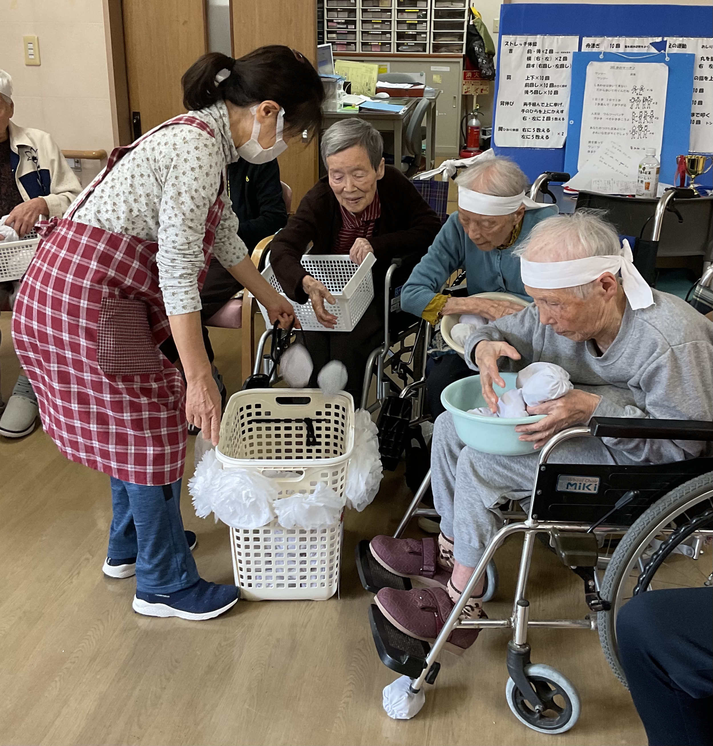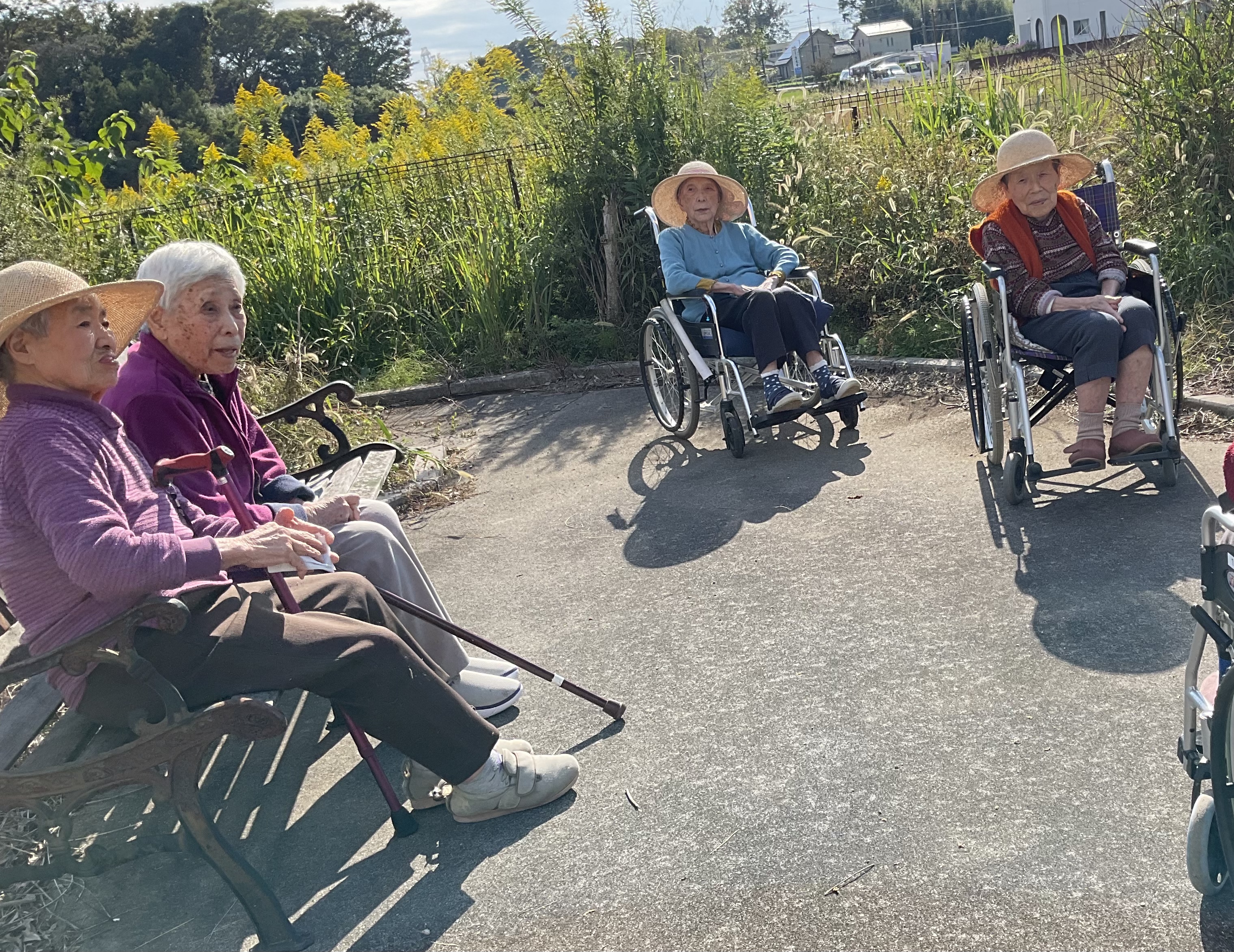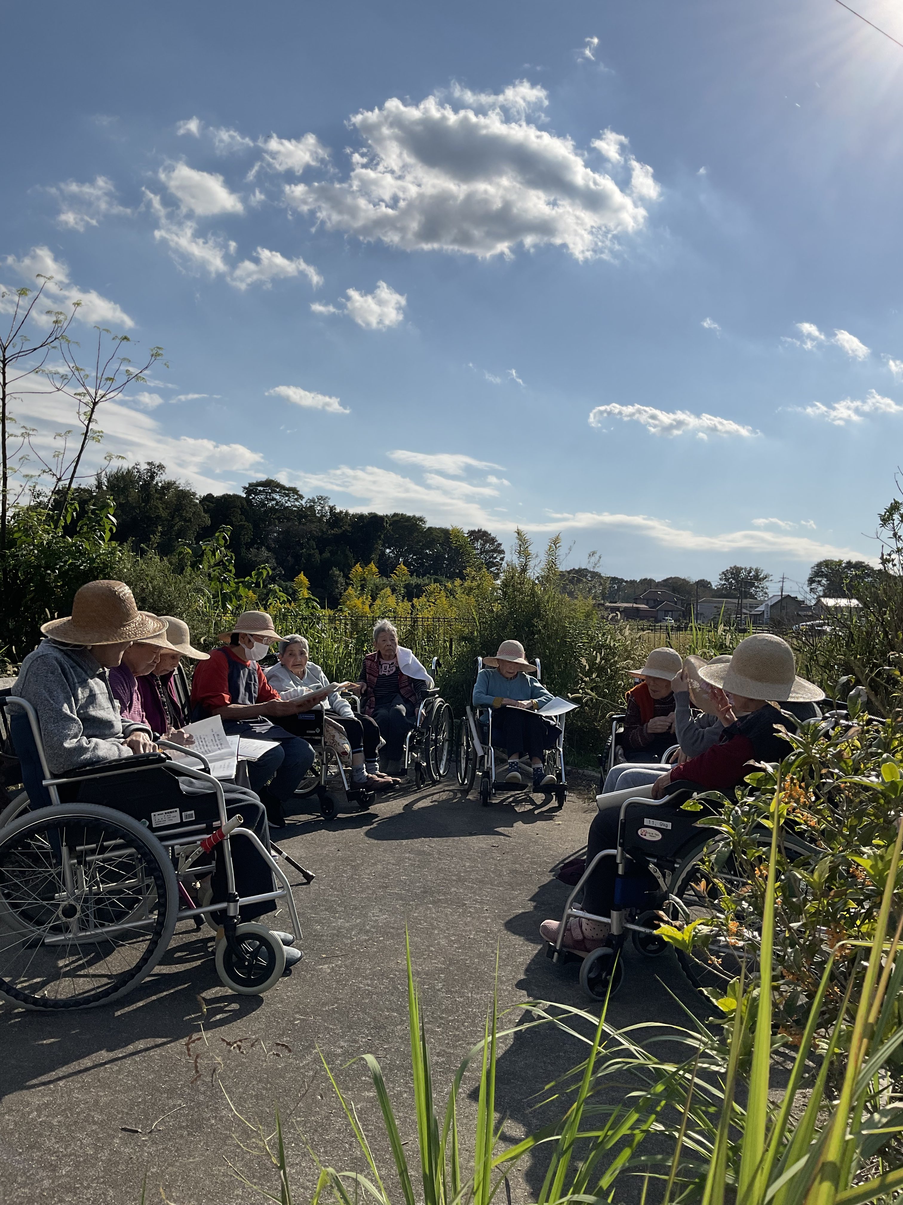 秋晴れの気持ちの良いお天気!珍しく私も行くわ、私もと、いつのまにか賑やかな集まりになりました。歌のお好きなl様が歌いましょうよと言うことで、大急ぎで歌の本を用意し、大きな声で30分ほど歌を楽しみました。(板)