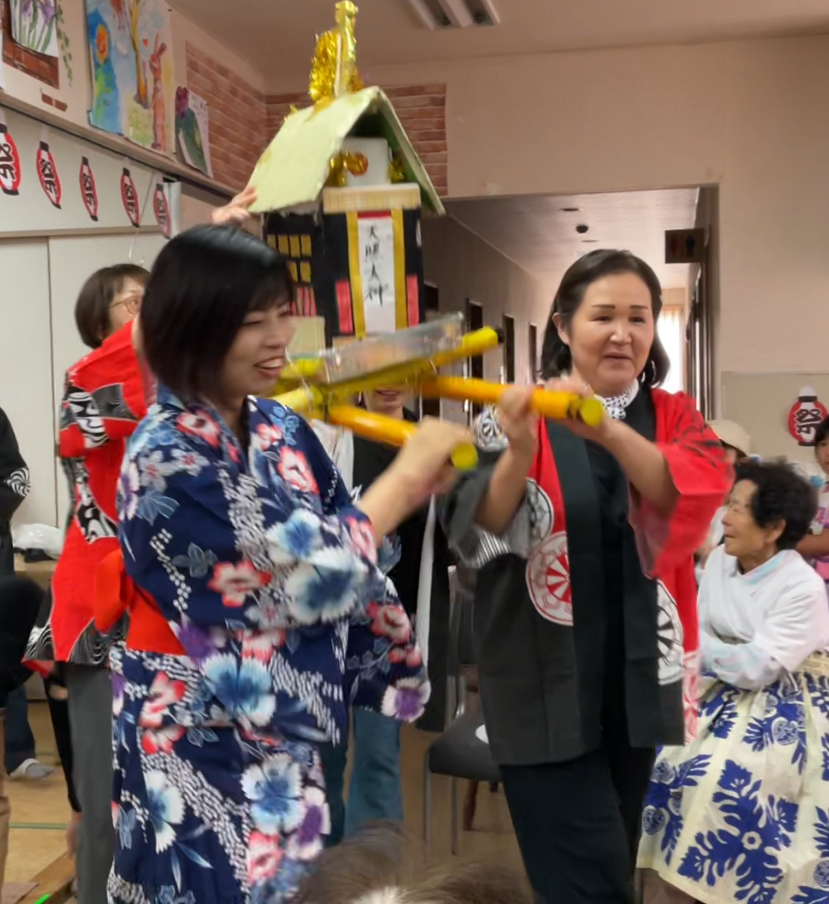 午後は、ご利用者様のご家族が担ぐ男神輿、スタッフの女神輿で