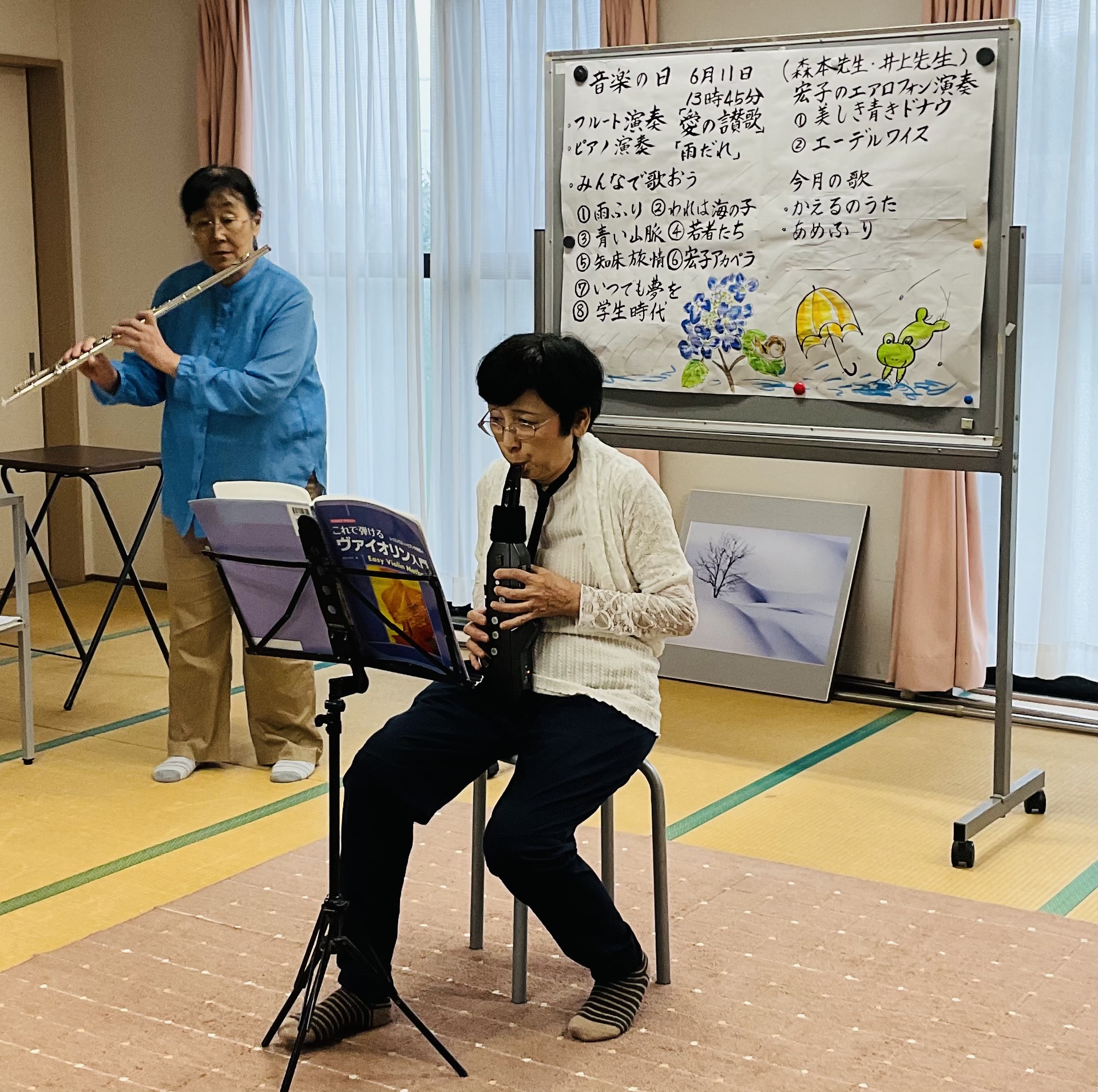 ピアノやフルート美しい音色に、ご利用者様耳を傾けていらっしゃいました。