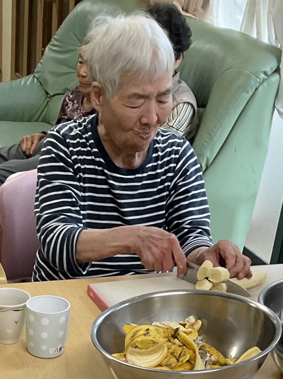 6月のお昼作りはカレーライス、バナナヨーグルトです。