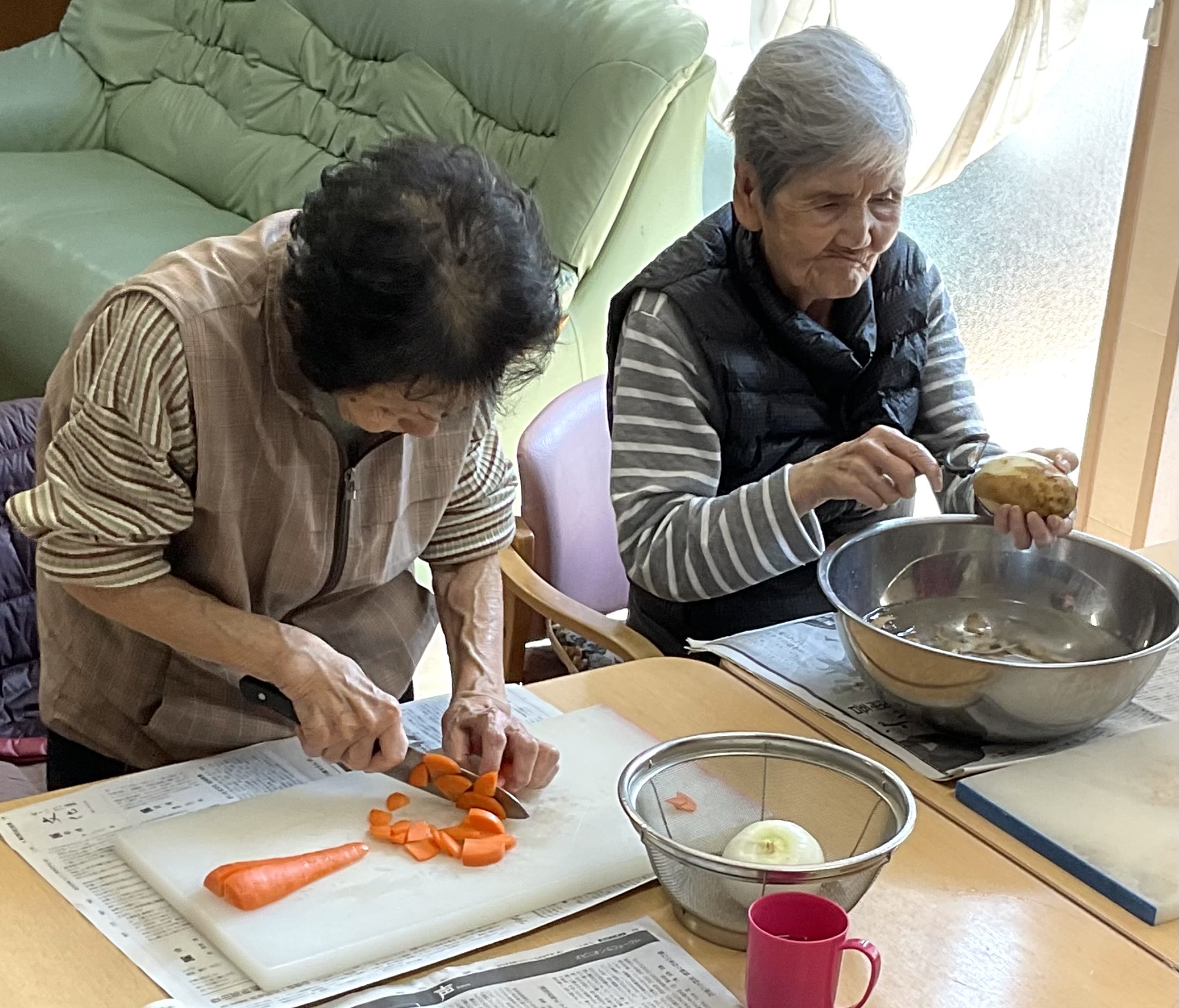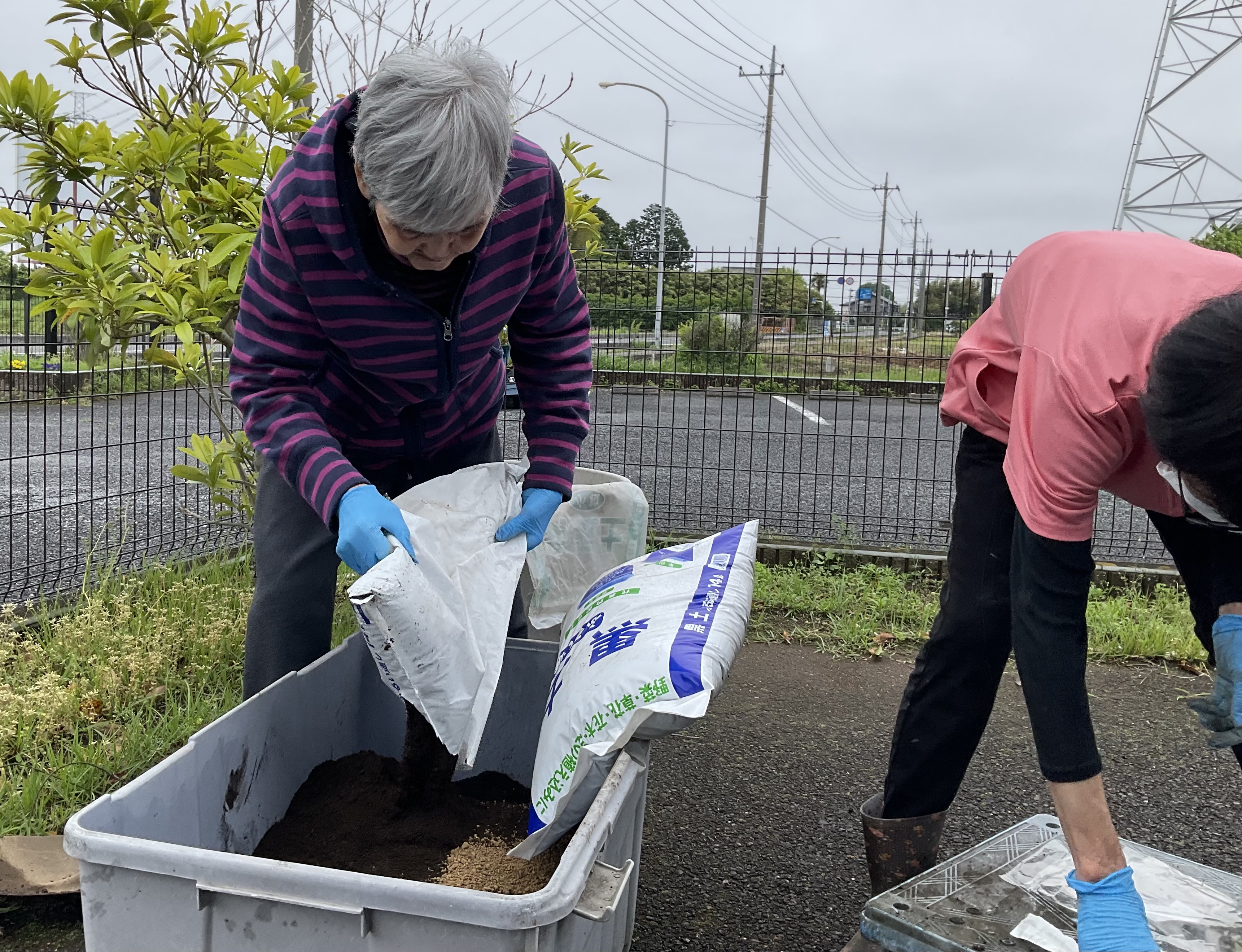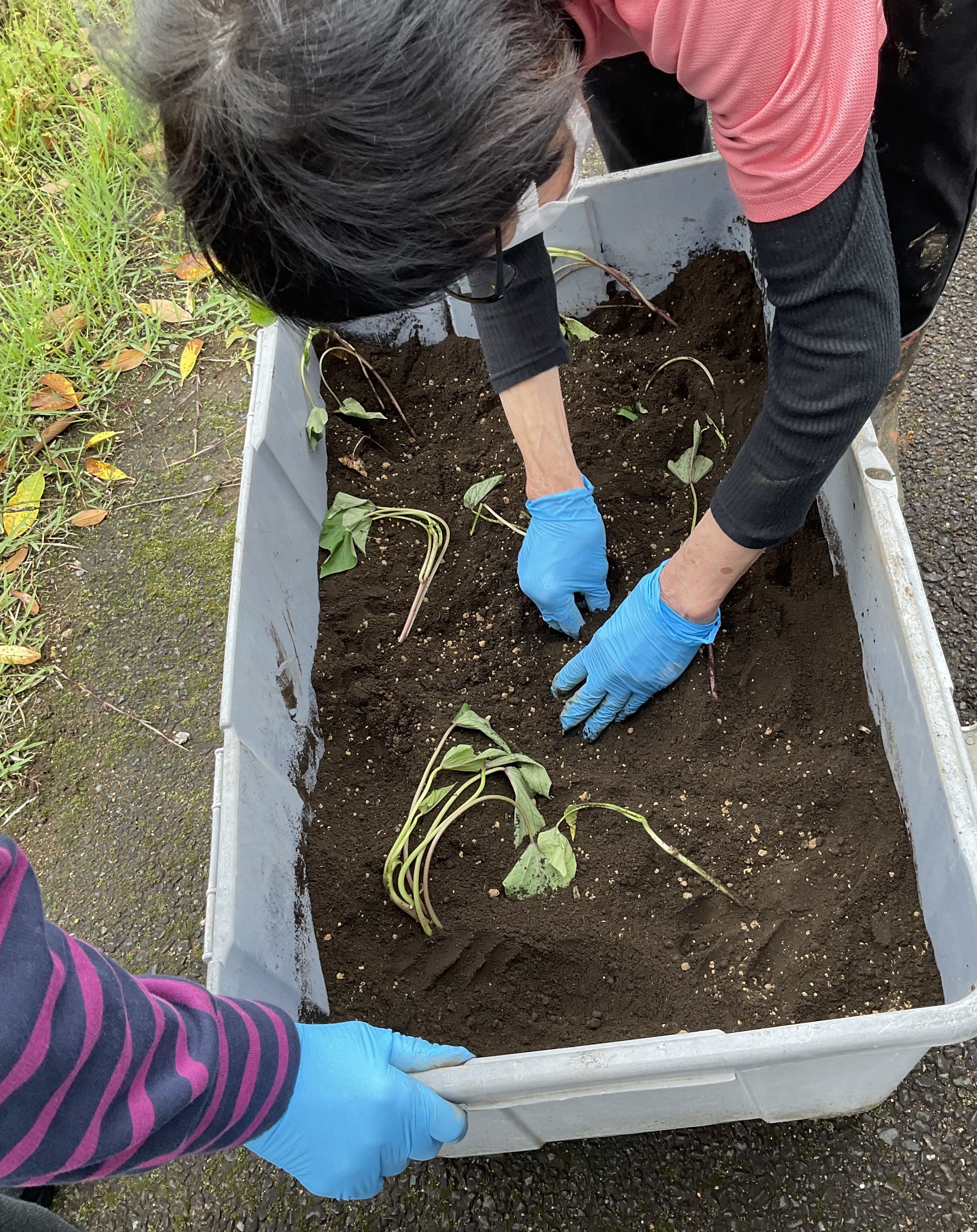今年は、大きな箱(ゴミ箱を卒業した箱)にさつまいもの苗を植えることにしました。ご利用者のH様は、土の袋を持ち上げられる程ハッスルされました。周りで見ている職員は、こんなに簡単に出来るのなら、家でやってみよう〜!なんて言ってましたよ。秋には、箱一杯に根が張って大きなお芋が出来たらいいなあ。(l)
