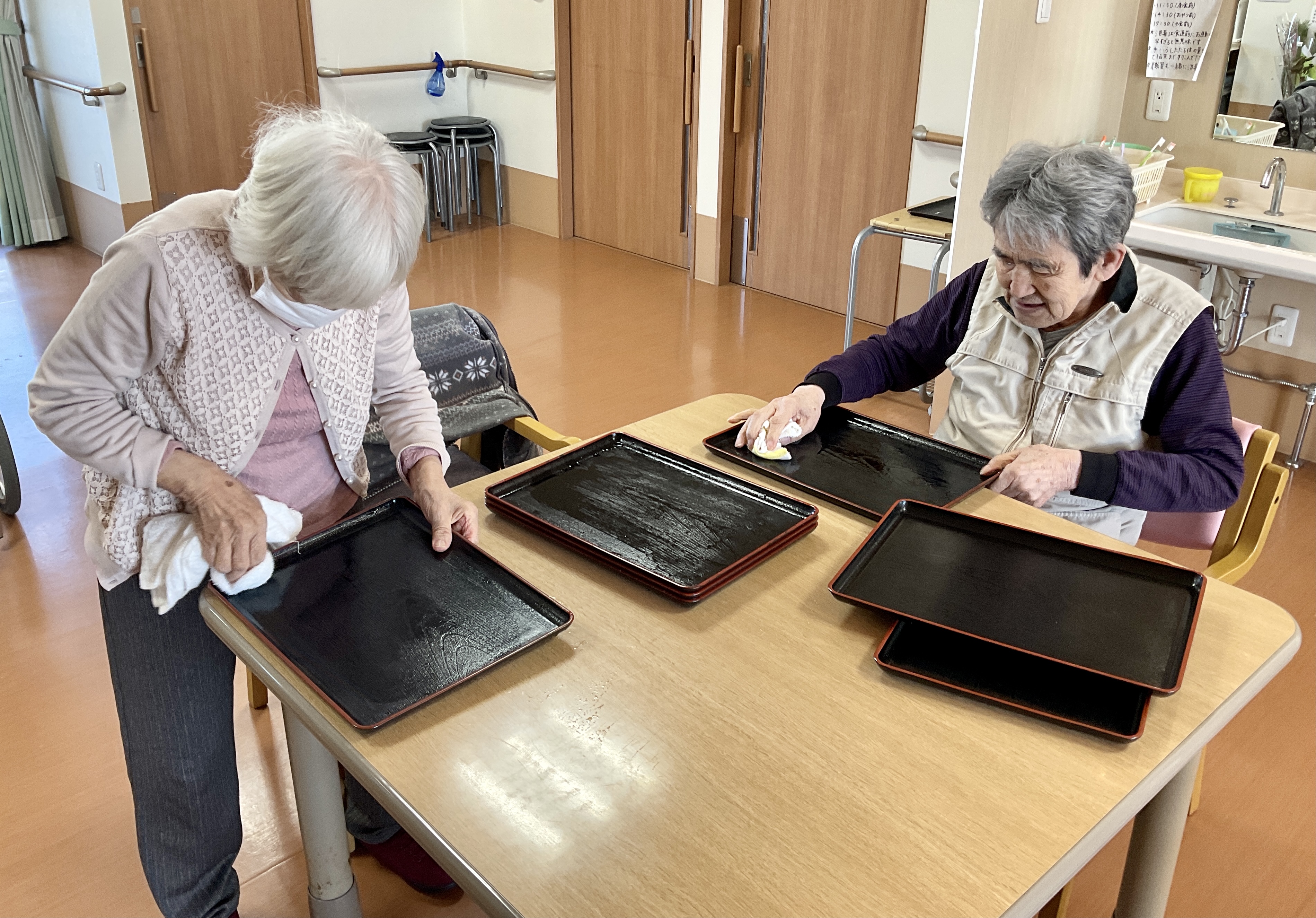 洗濯物たたみ、食器やお盆拭きなどお手伝いも頑張っています!
