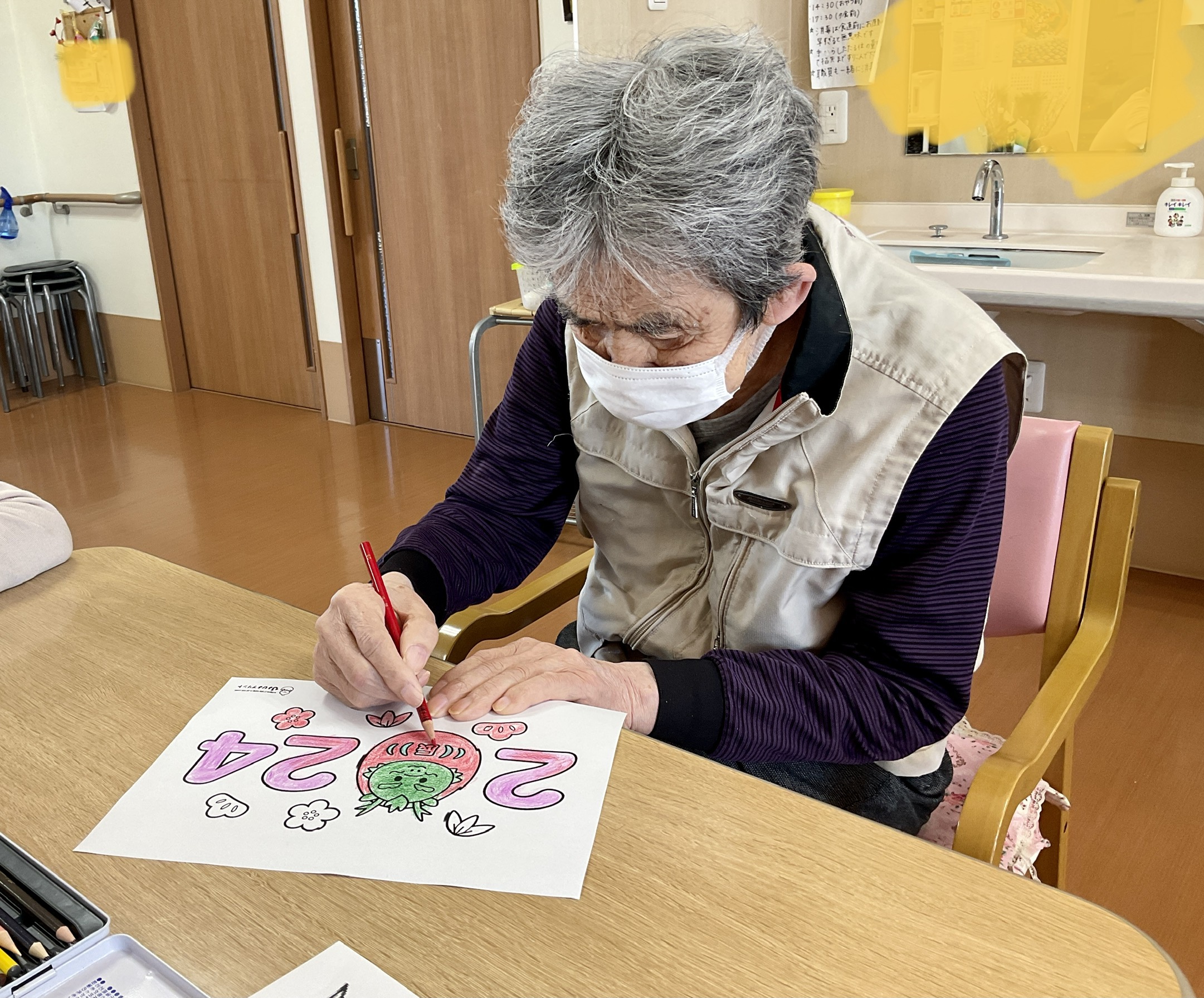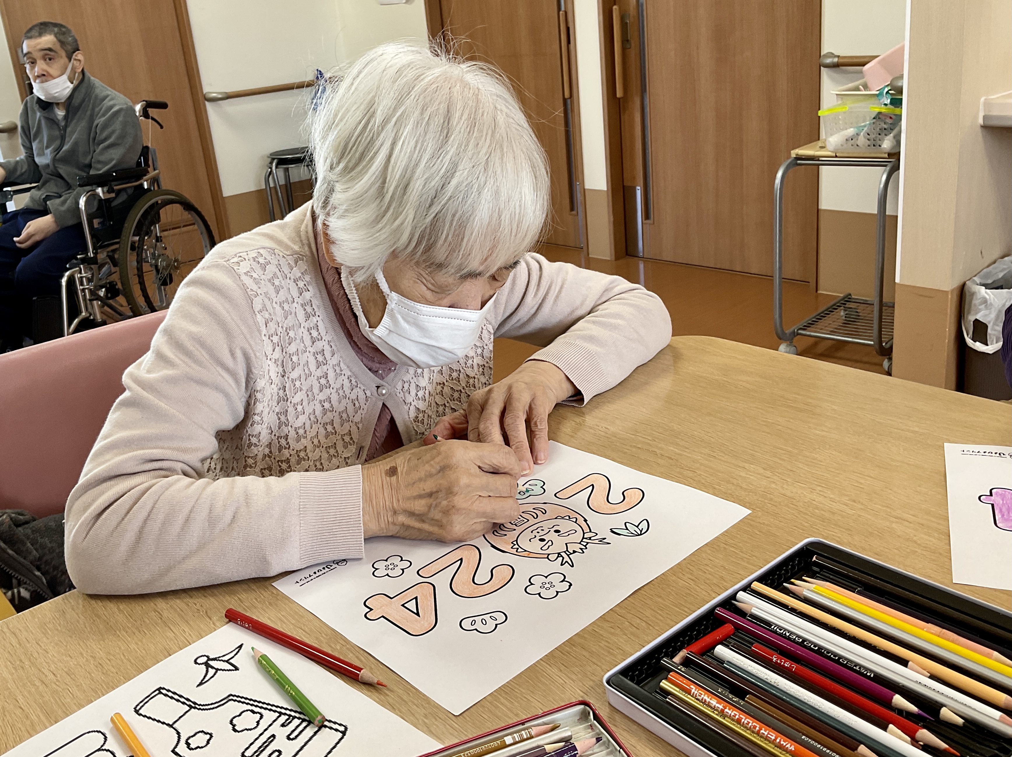 グリーンライフ栗橋では1月の塗り絵を行いました!