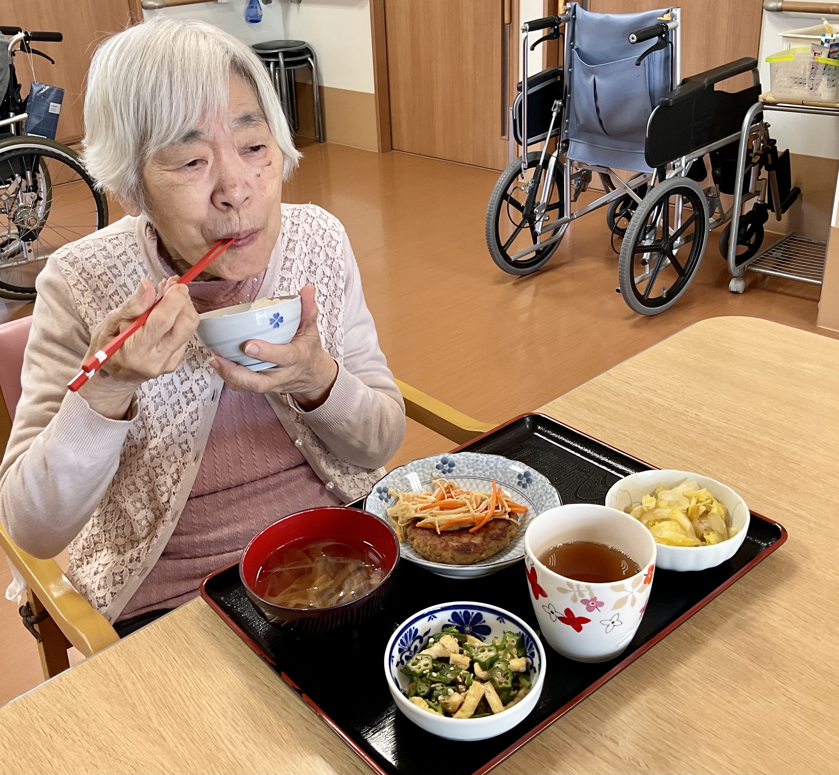 お昼ご飯はハンバーグ!皆様美味しそうに召し上がりました!