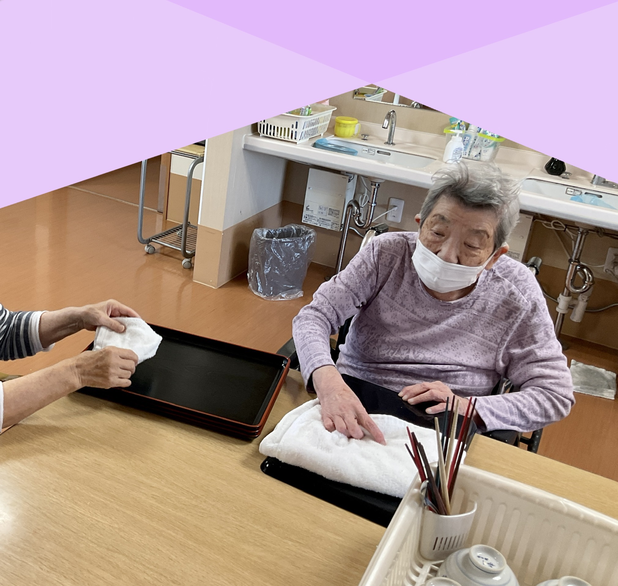 皆様洗濯物たたみ、食器拭きなどとても上手に丁寧に行えています✨