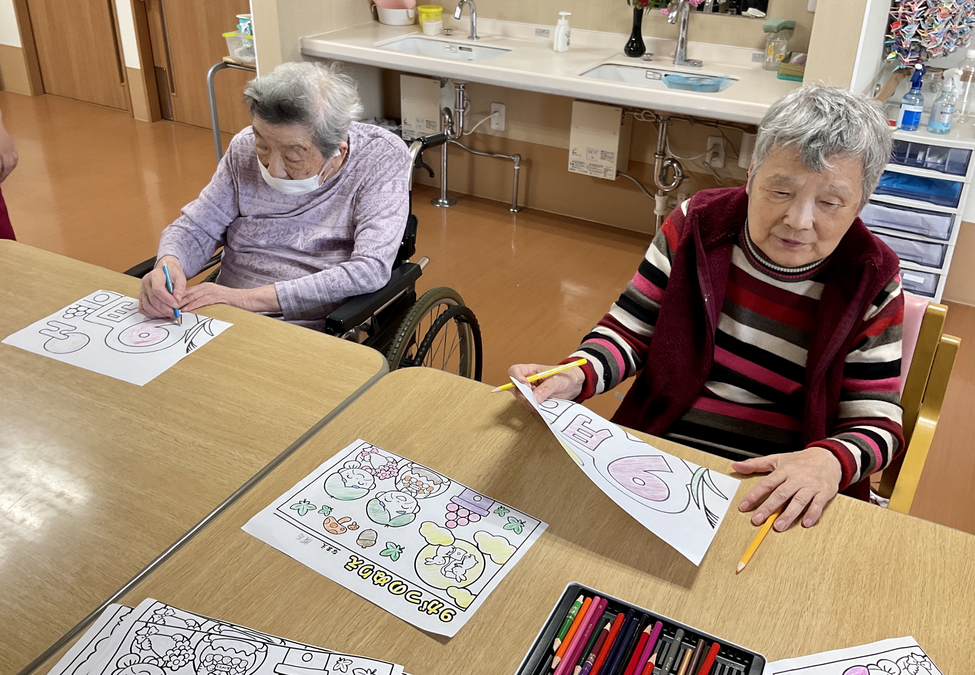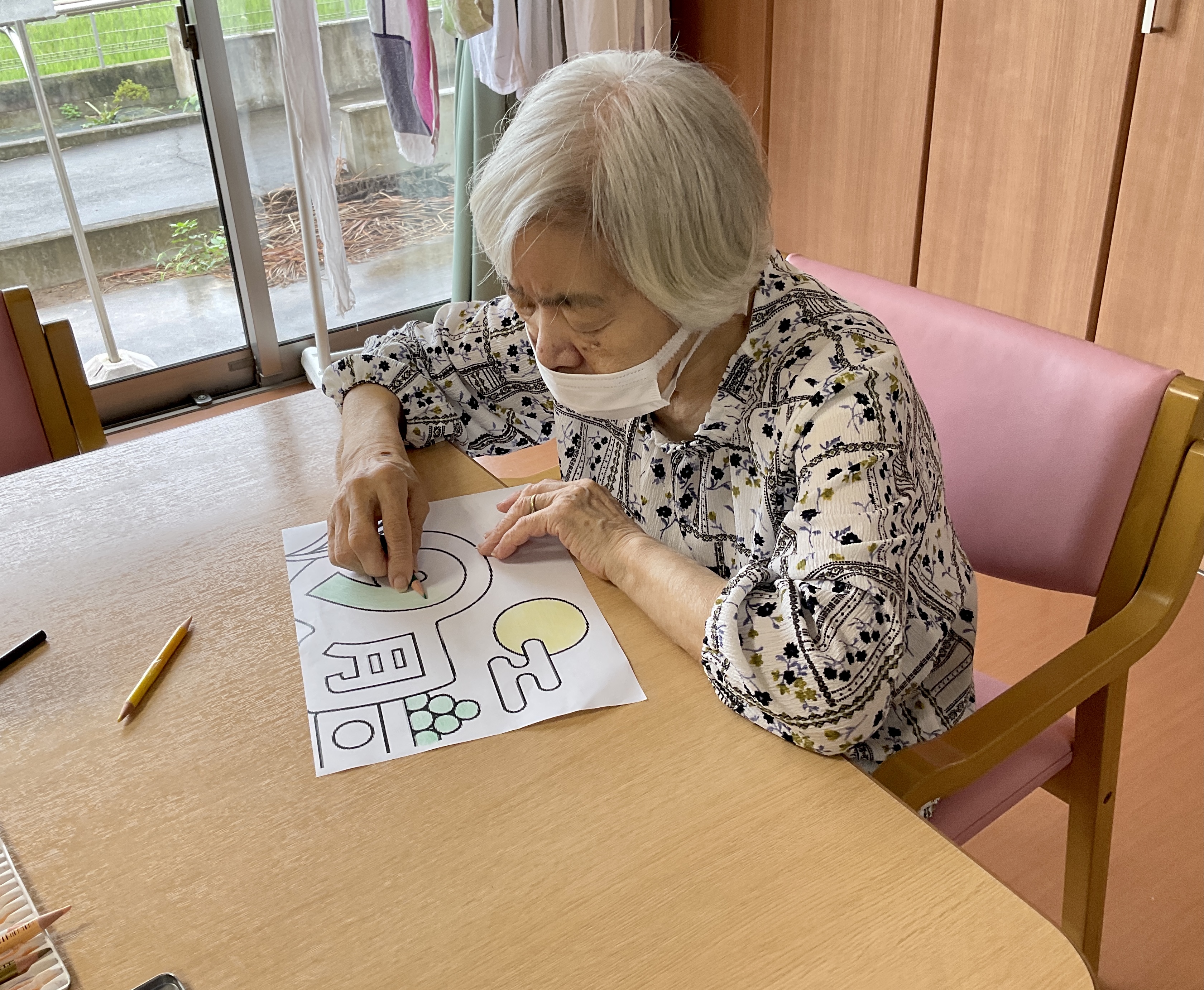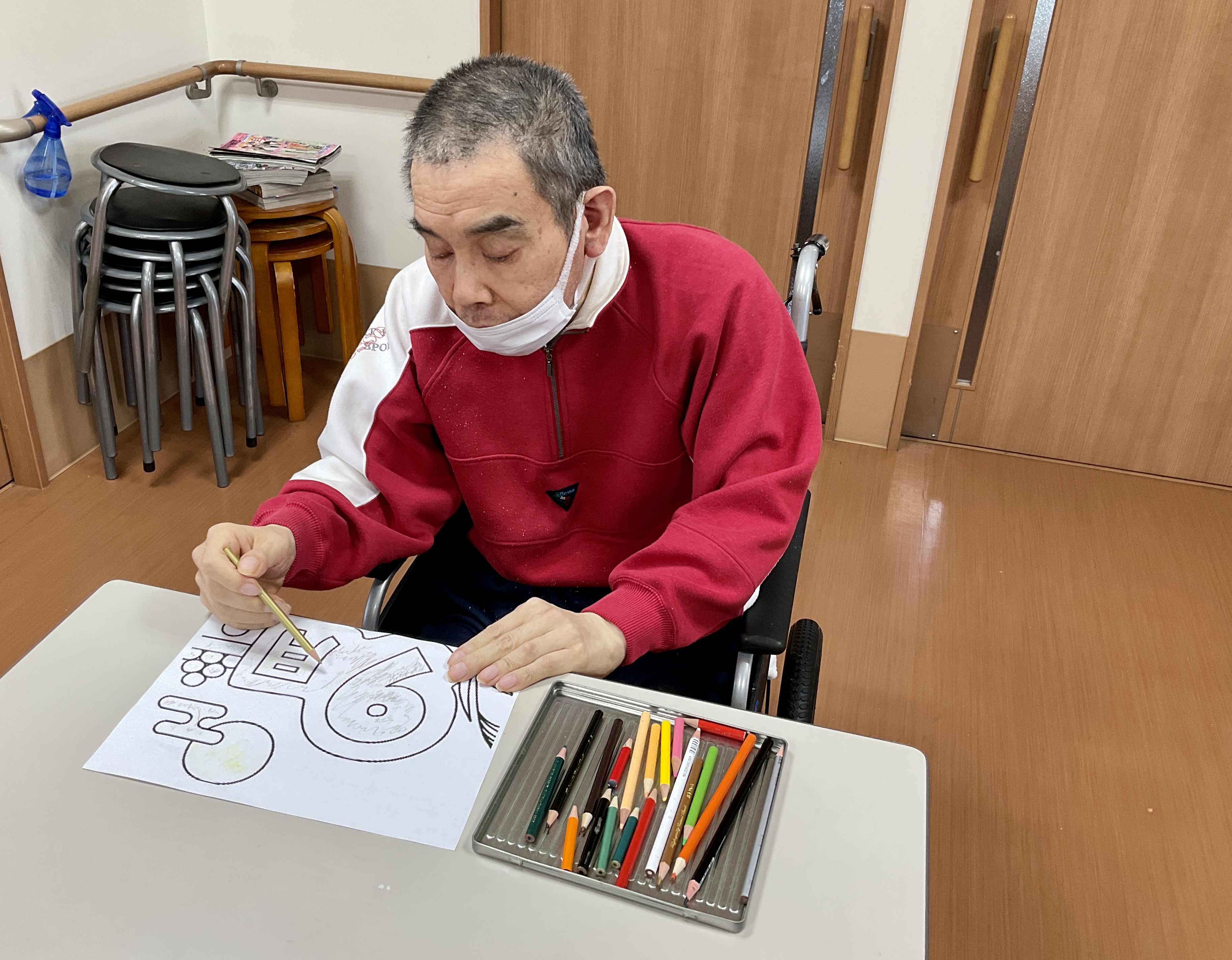 皆さん好きな色で自由に塗っています!個性的な方もいますね(*´-`)