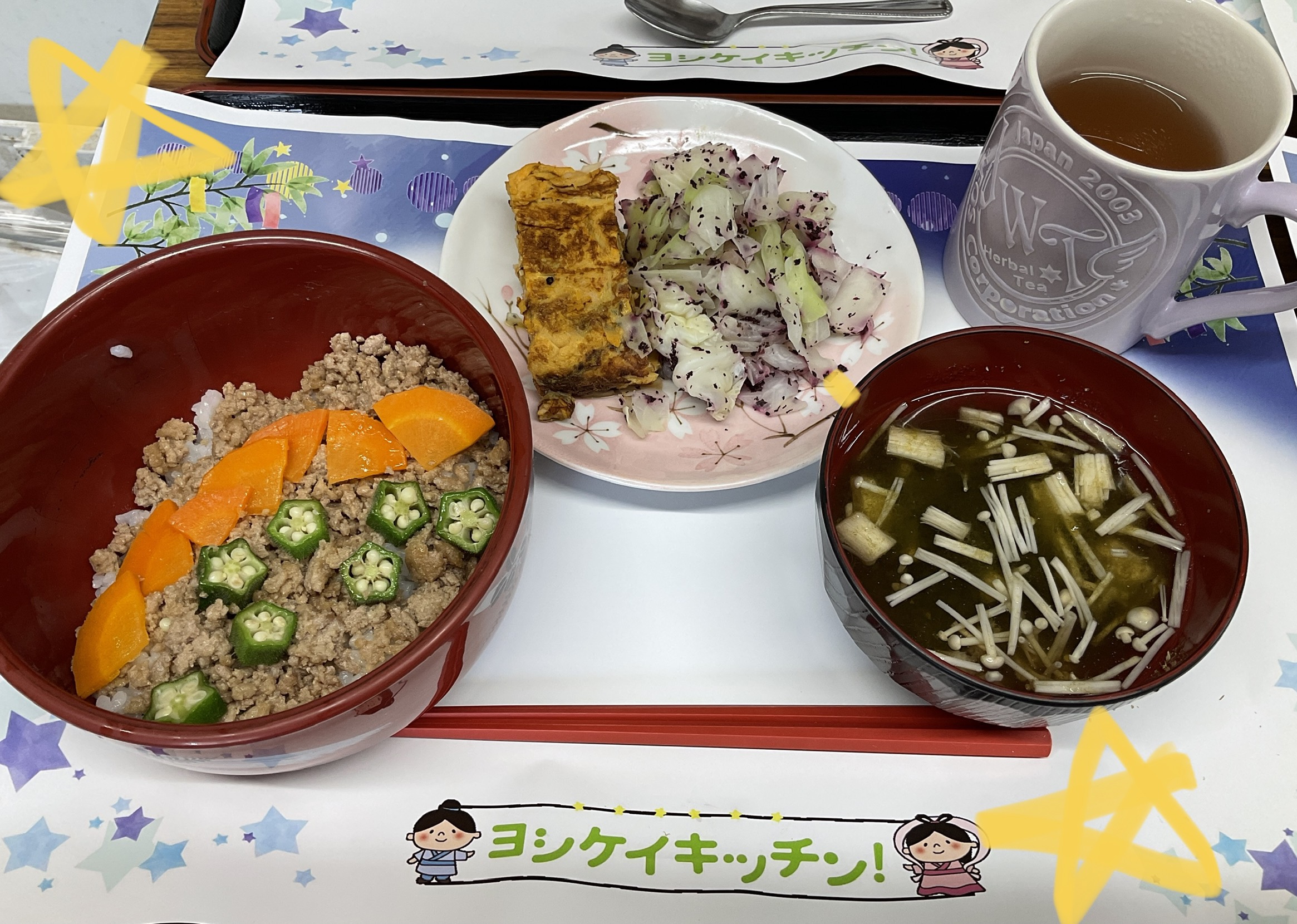 お昼ご飯は〔七夕そぼろご飯〕で七夕気分を味わいました♪