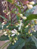 この白い花は『クラリンドウ』と言う花で、別名『ブライダルベール』と呼ばれているそうです。