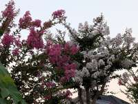 境内には約130本のさるすべり(別名、百日紅)が植えられており、7月頃から咲き始め8月に見頃を迎えます。今年は暑さのせいか、花が少ない様に感じます。さるすべりの他、樹齢600年の楠も見ものです。