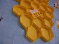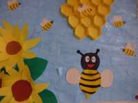 蜂の巣は色画用紙を用いて立体となっています。