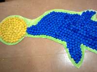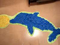 ペットボトルキャップを用いたイルカです。イルカがボールを口先で持ち上げているのですが…