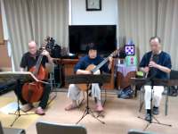 夕食はバイキング形式で提供し、地元の音楽愛好家「PENSIONS」の演奏を聴きながらのひと時でした。入居者様との合唱もあり盛り上がりをみせていました。ノンアルコール飲料とはいえ、雰囲気は味わって頂けたかと思います。