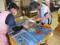 コツコツと時間をかけ、花火を表現。絵の中には鳥居や提灯もあり、まるで宮島の花火大会みたいです(笑)