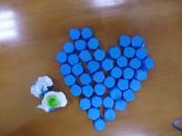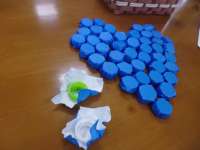 只今沖今デイでは利用者様に大量のペットボトルキャップを色紙で包んで包んで・・・包みまくって貰ってます。