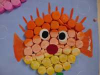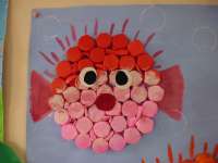 ペットボトルキャップを用いたハリセンボン🐡の壁画ができました。