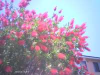 別名『金宝樹』、英語では『ボトルブラッシュ』と呼ばれ、縁起の良い木とされています。5~6月頃に開花し、赤やピンクの花糸がブラシのように咲きます。