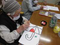 6月用の玄関に飾る貼り絵を作っています。細かな作業ですが「手のリハビリになるね」と言われ、熱心に取り組んでいただいています。